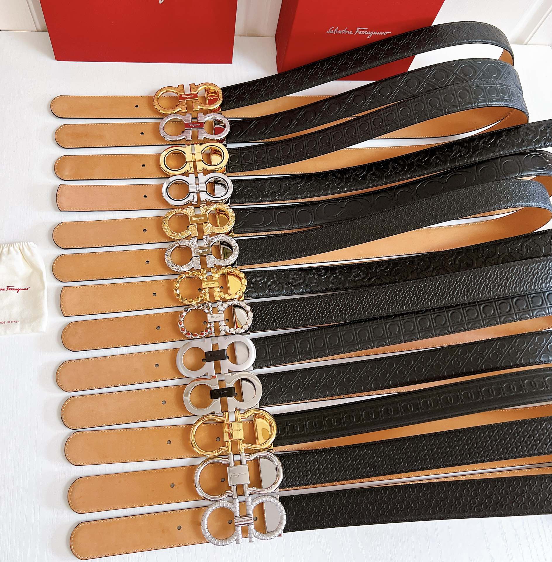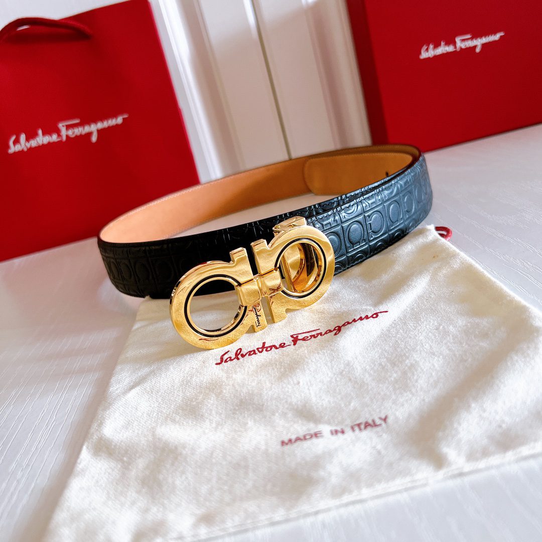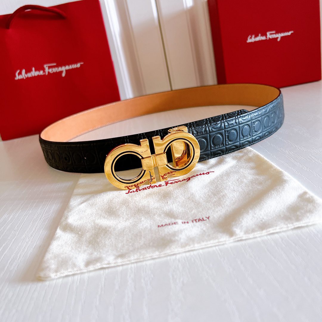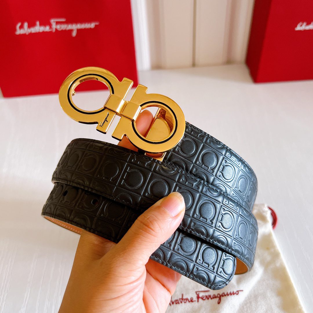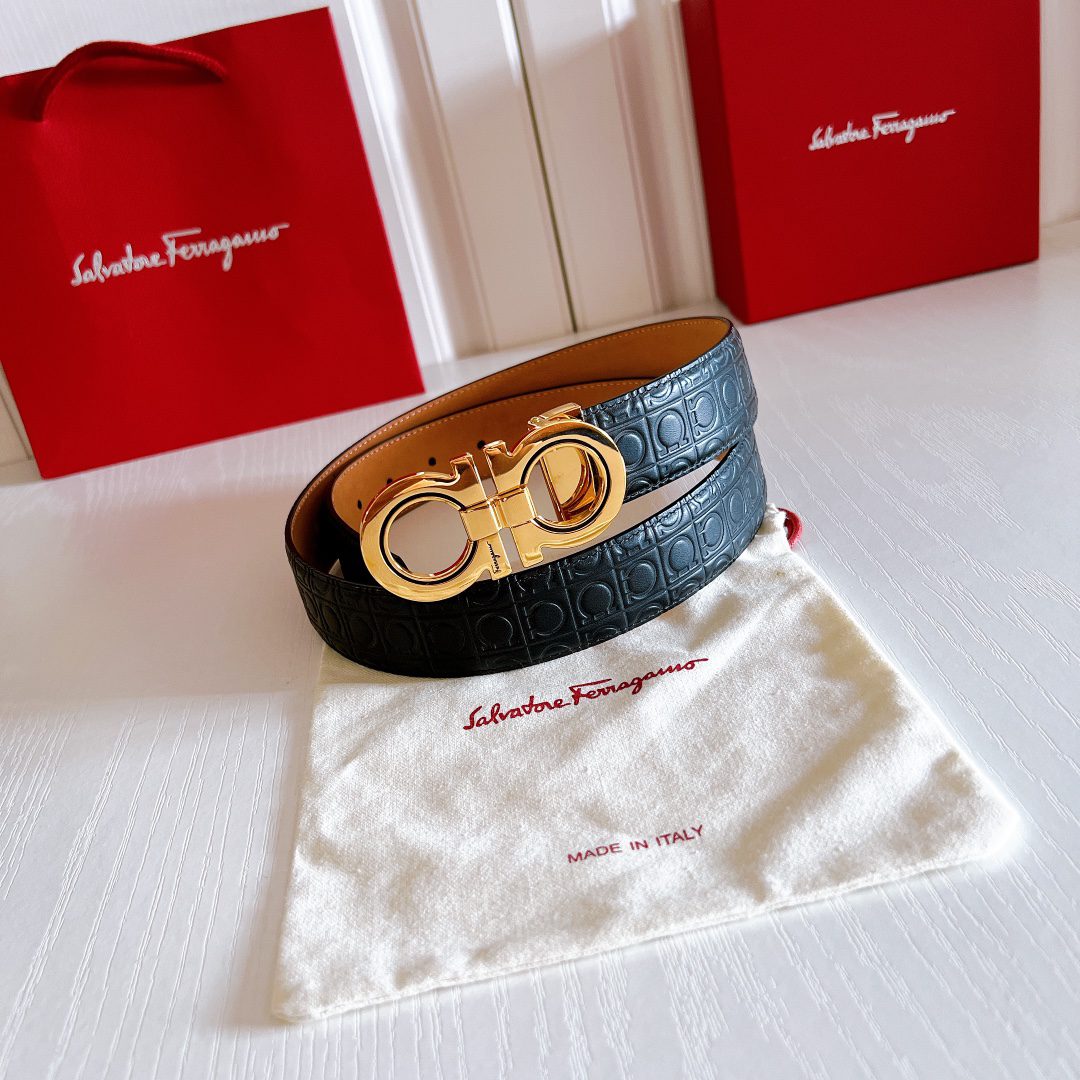Belt Ferragamo (Ferragamo) double-sided original version, original stitching, 3.4cm same style as in the counter
