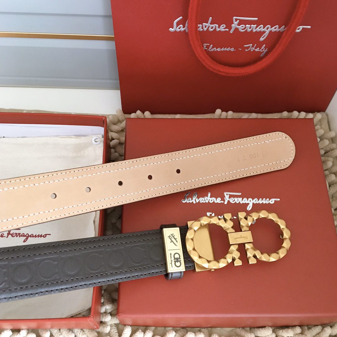 Belt Ferragamo (Ferragamo) double-sided original version, original stitching, 3.4cm same style as in the counter