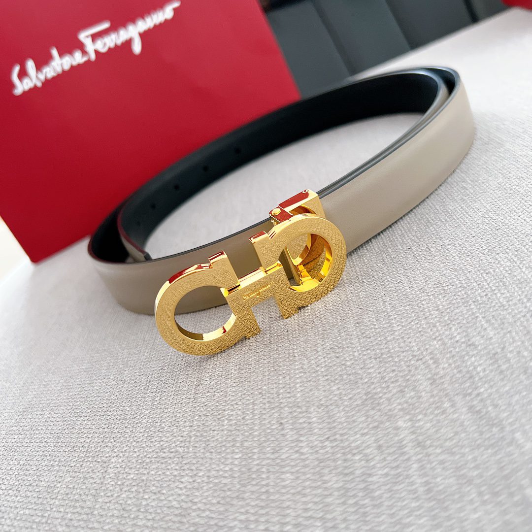 Belt Ferragamo horseshoe buckle belt series plain calf leather body. Shining and eye-catching