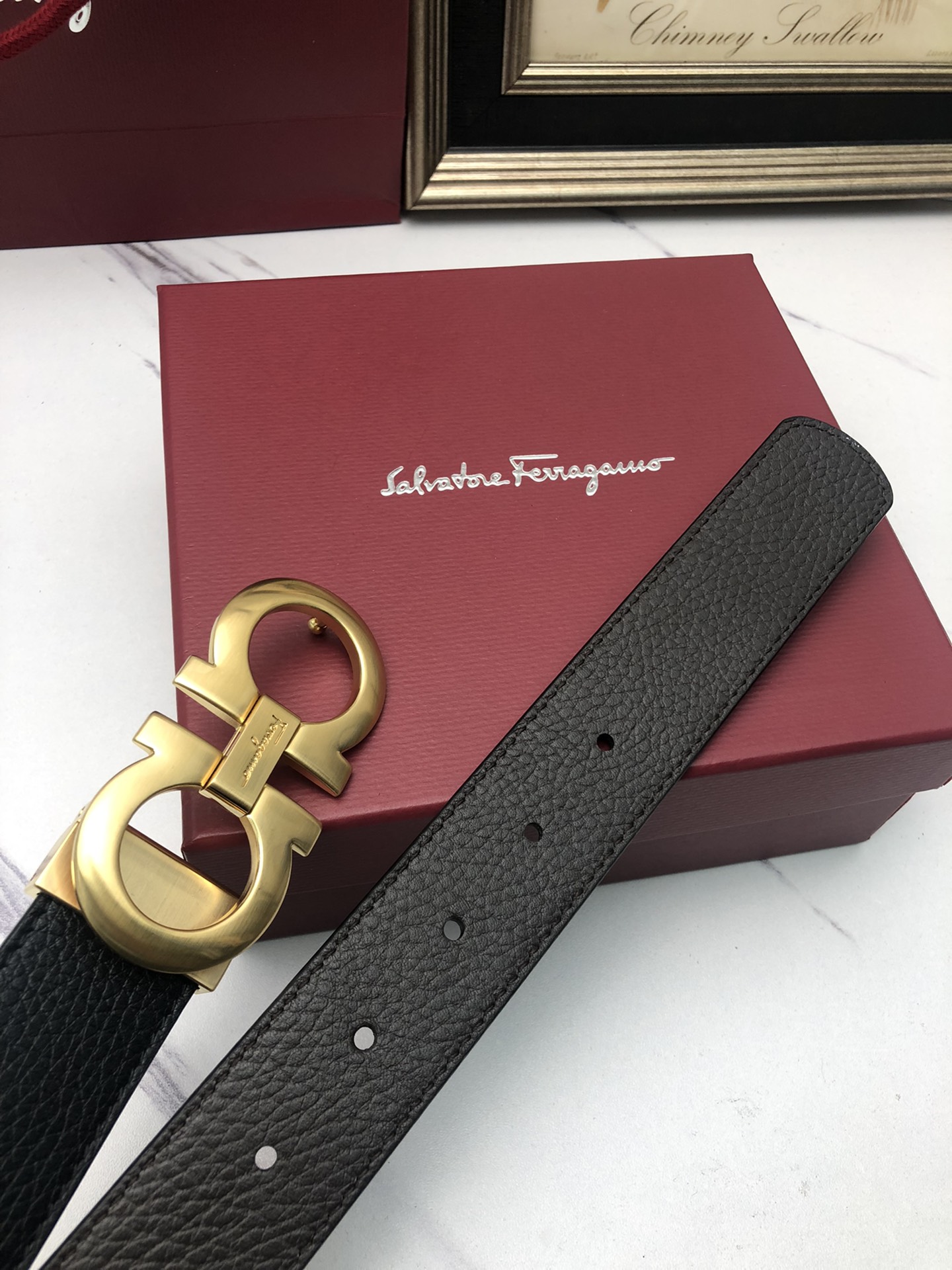 Ferragamo: Original single double-sided first-layer cowhide leather belt with litchi pattern. Black and brown two-color one, can be dual-used and cut. With original single buckle, customized original leather, counter width jn44