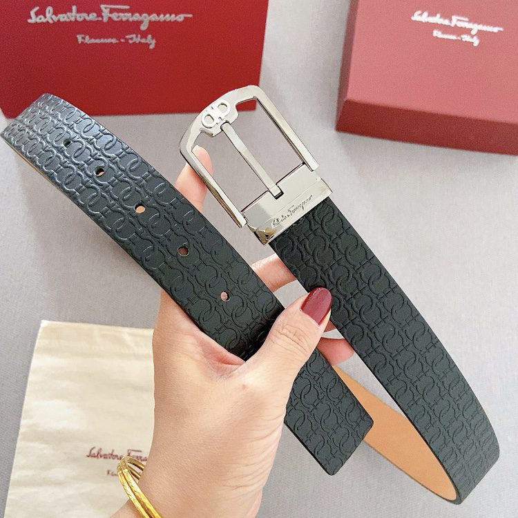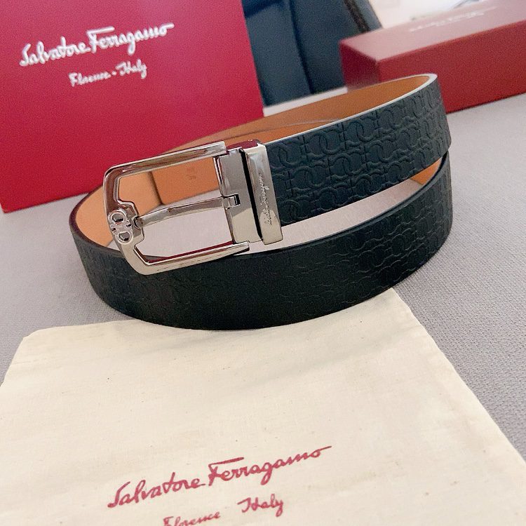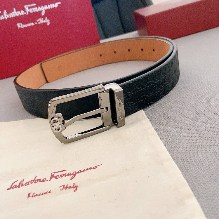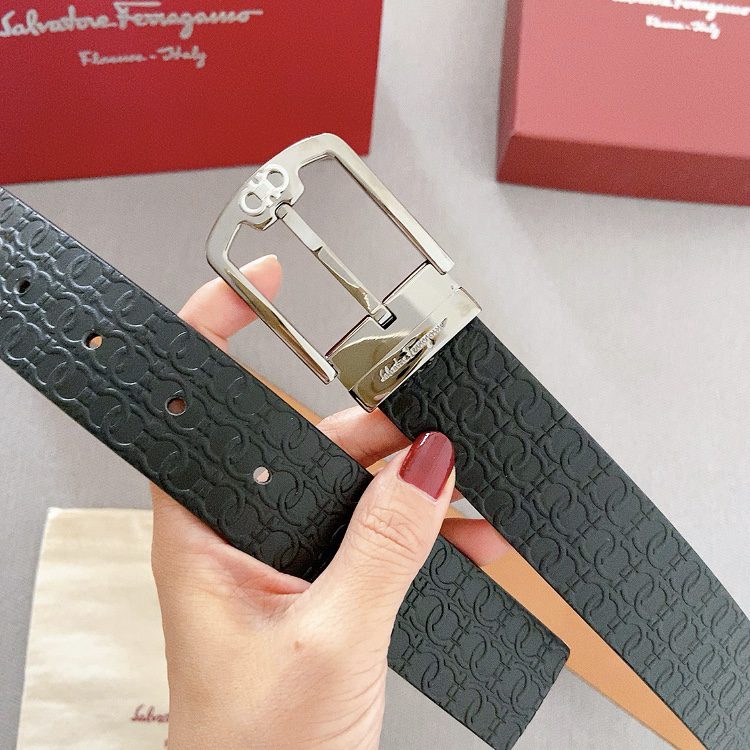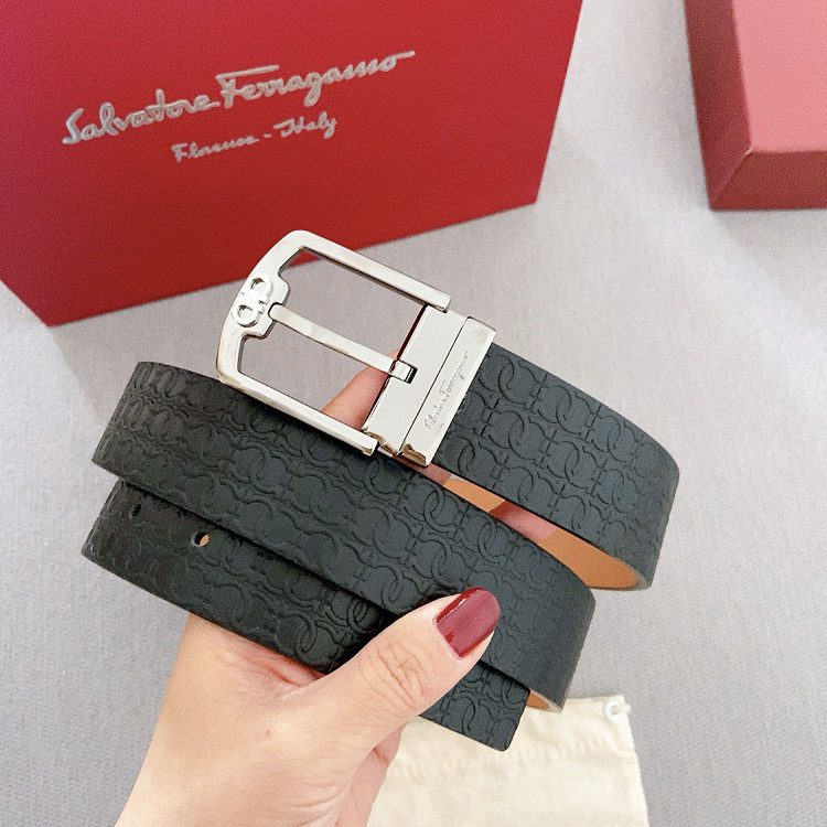 Belt Ferragamo pin copper buckle double-sided original, original stitching, 3.4cm