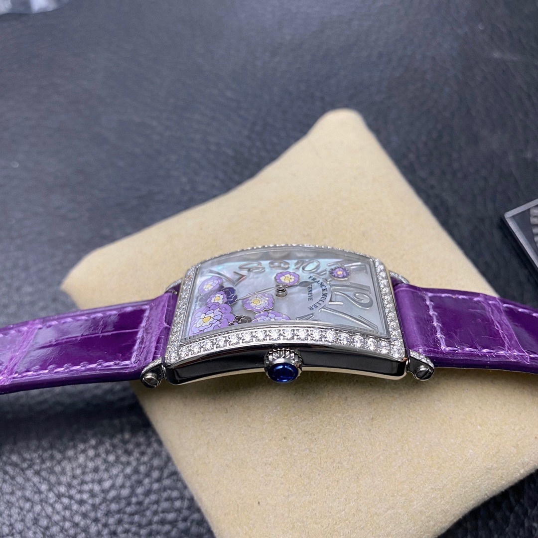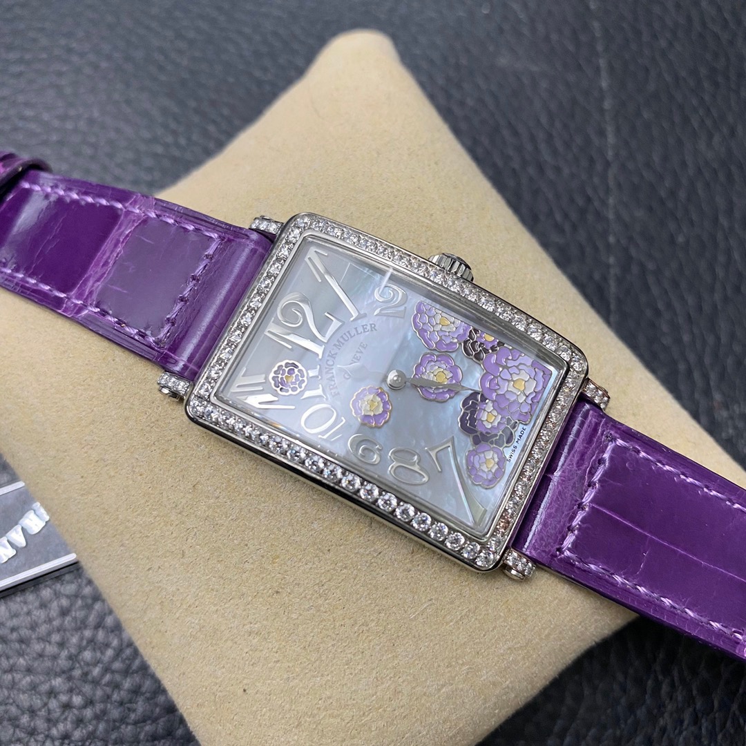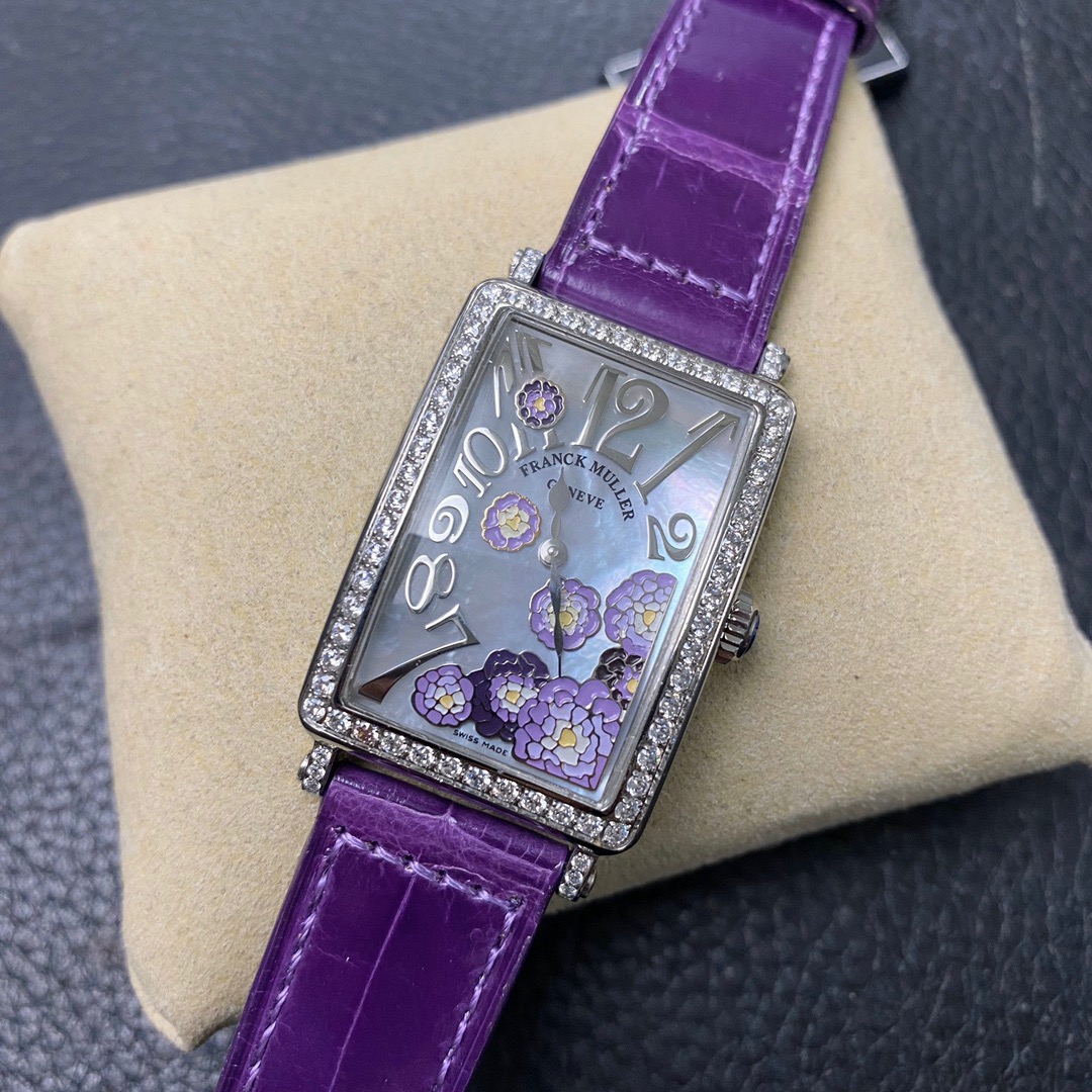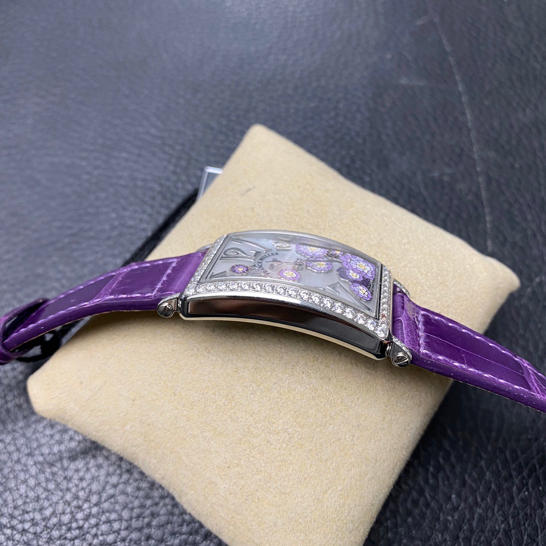 Home Watch fm women’s Long Island series purple flowers paired with purple crocodile leather, so beautiful