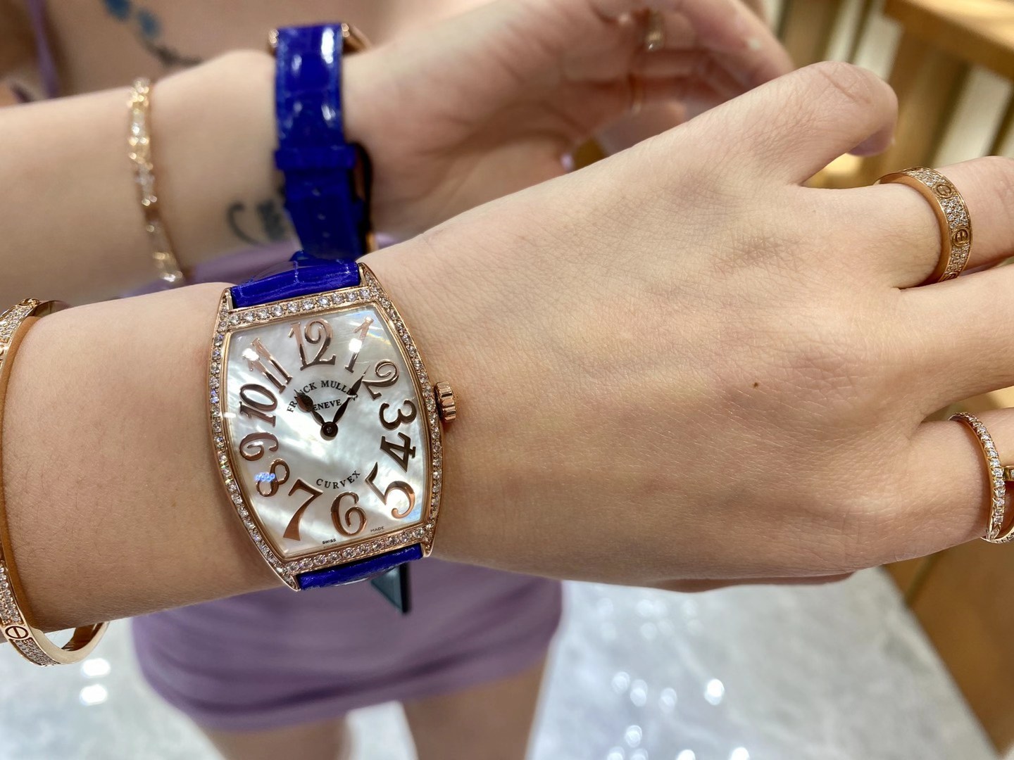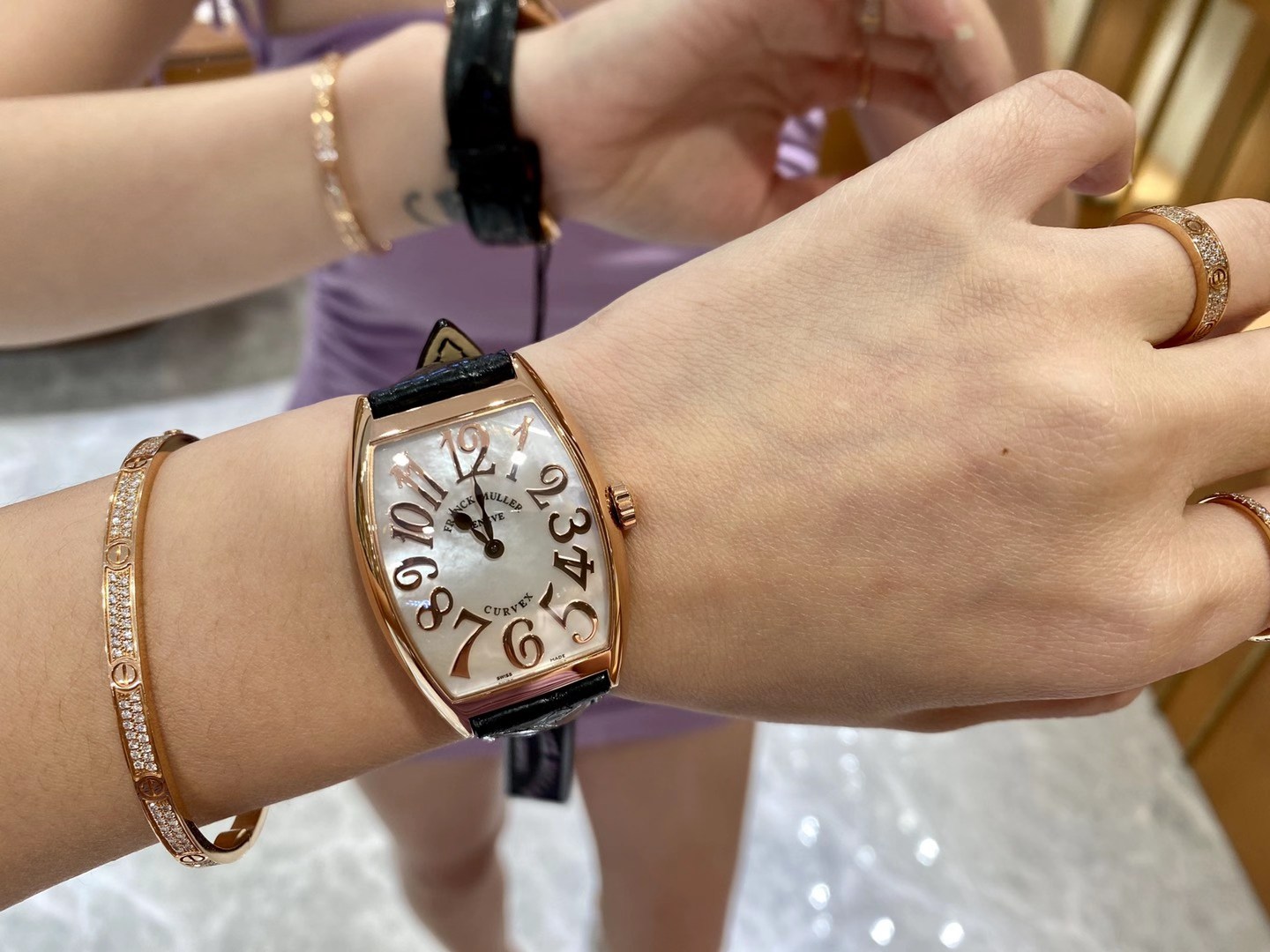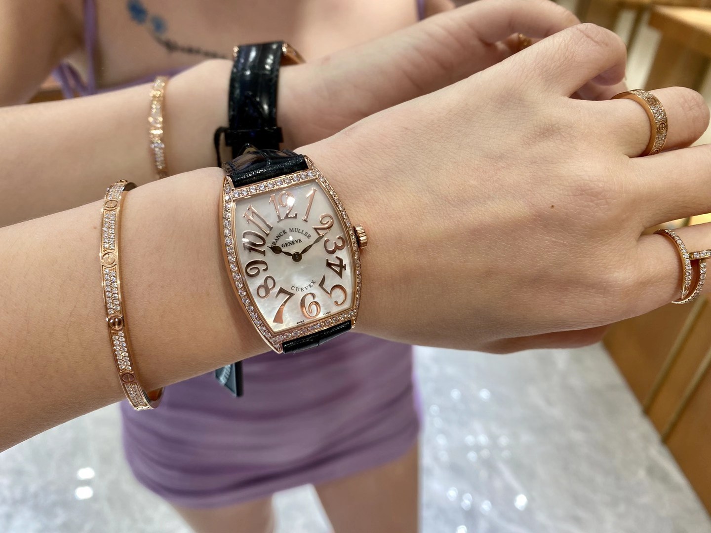 Franck Muller barrel-shaped women’s quartz watch CINTREE CURVEX series, size 43×31 mm. CNC machined and polished case, the bottom cover and the case are seamlessly spliced ​​and finely carved. The bottom cover is finely brushed and the fonts are clearly engraved.