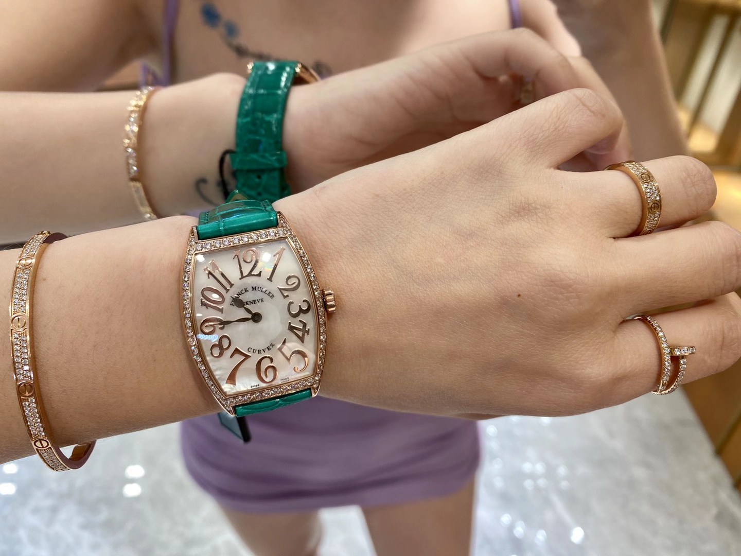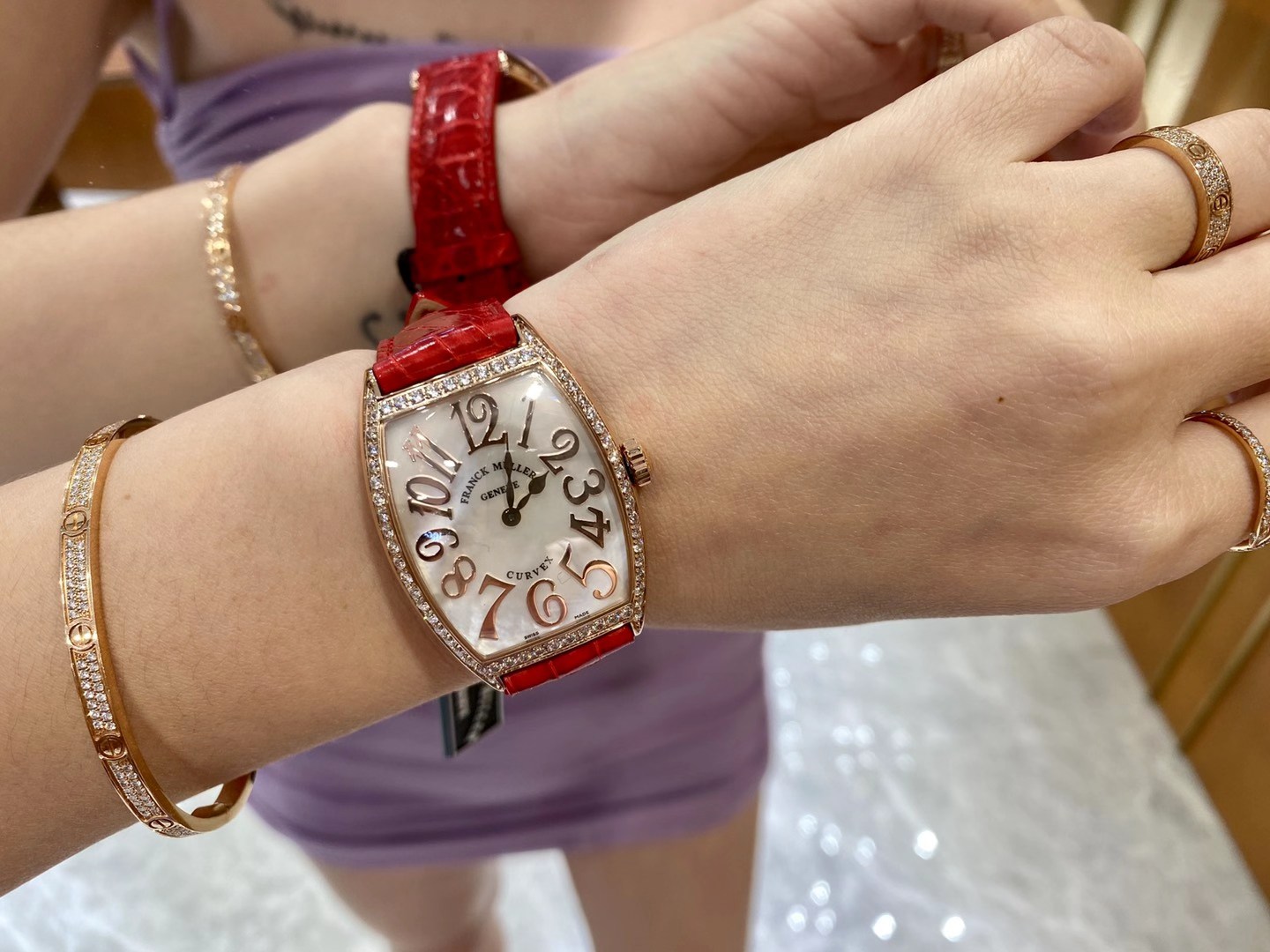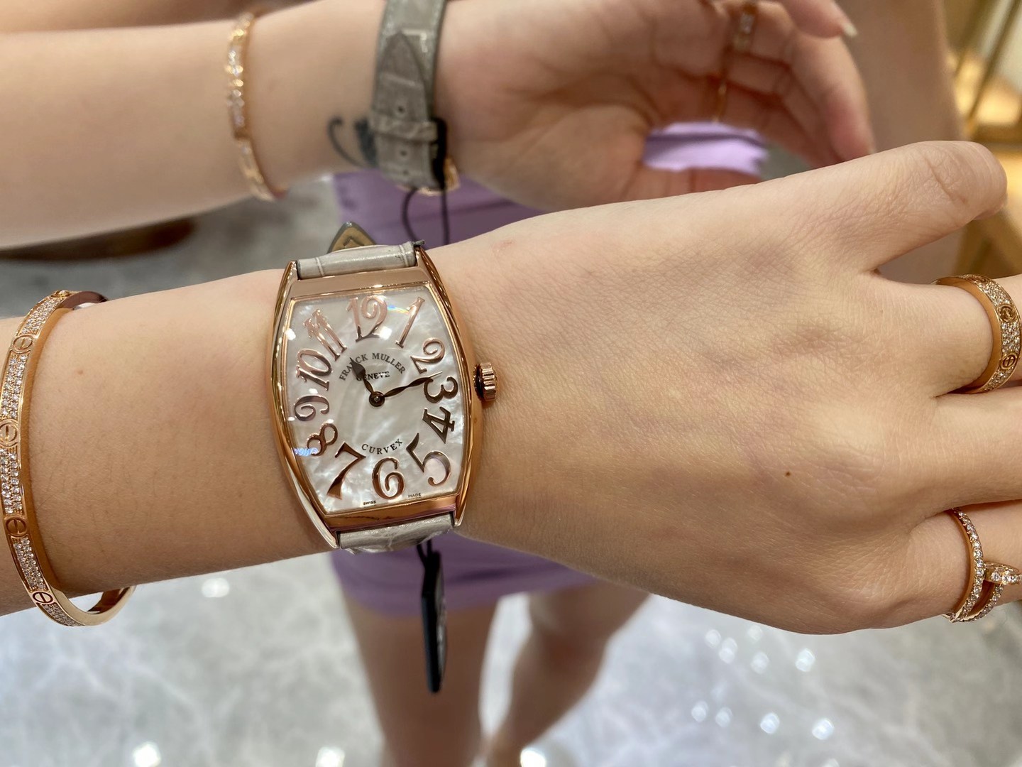 Franck Muller barrel-shaped women’s quartz watch CINTREE CURVEX series, size 43×31 mm. CNC machined and polished case, the bottom cover and the case are seamlessly spliced ​​and finely carved. The bottom cover is finely brushed and the fonts are clearly engraved.