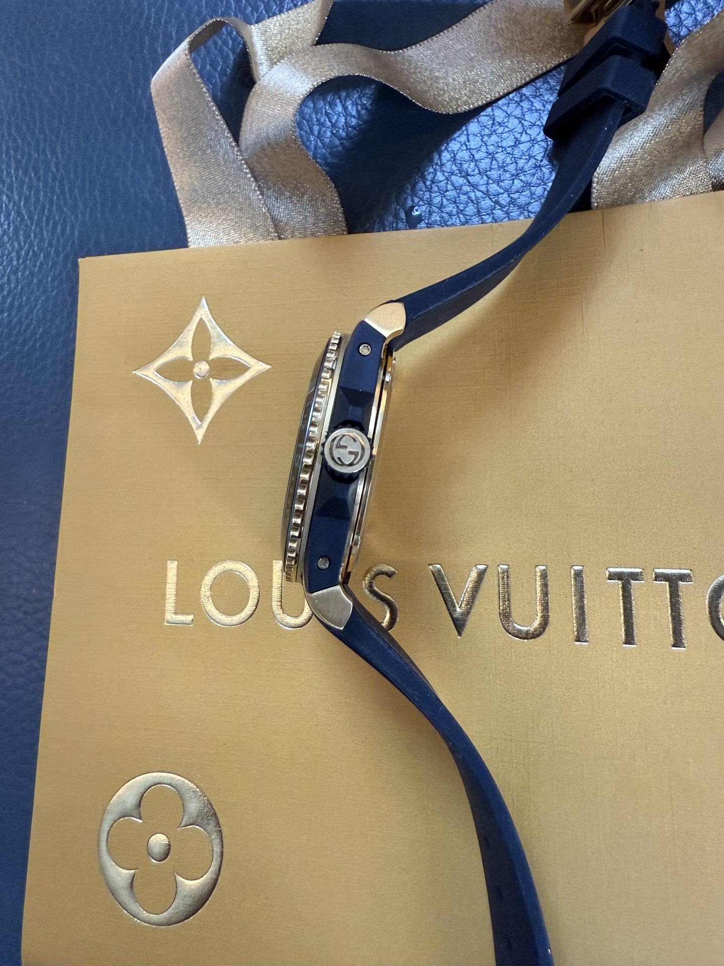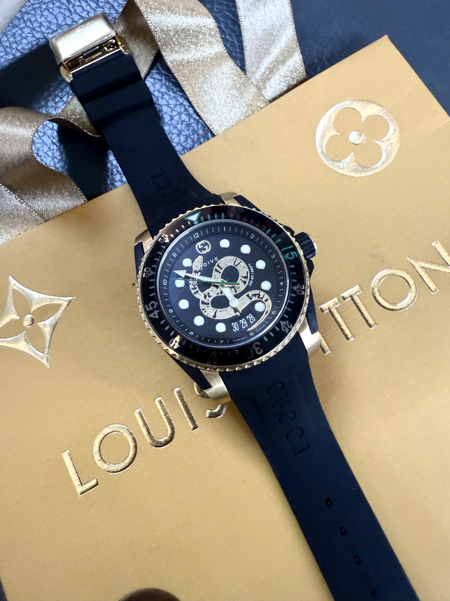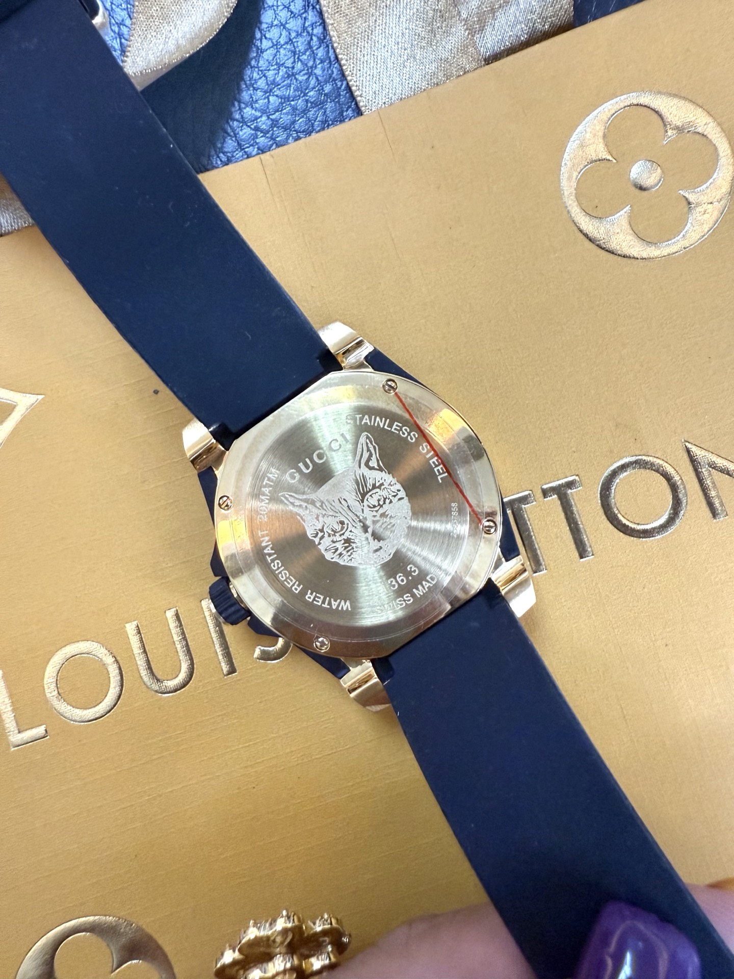 Gucci, 40 mm diameter, with the brand’s iconic “cat” pattern and luminous display. $650.00 Original price was: $650.00.$498.00Current price is: $498.00.