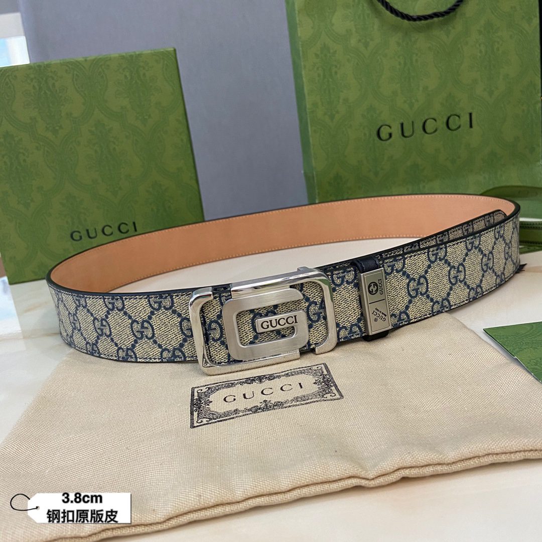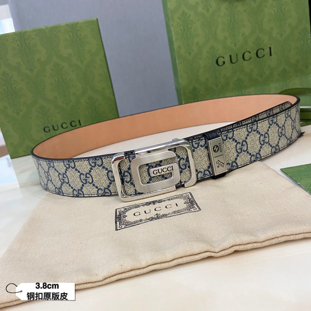 Belt GUCCI Gucci original order genuine, counter printed steel buckle blue cowhide, cm new arrival