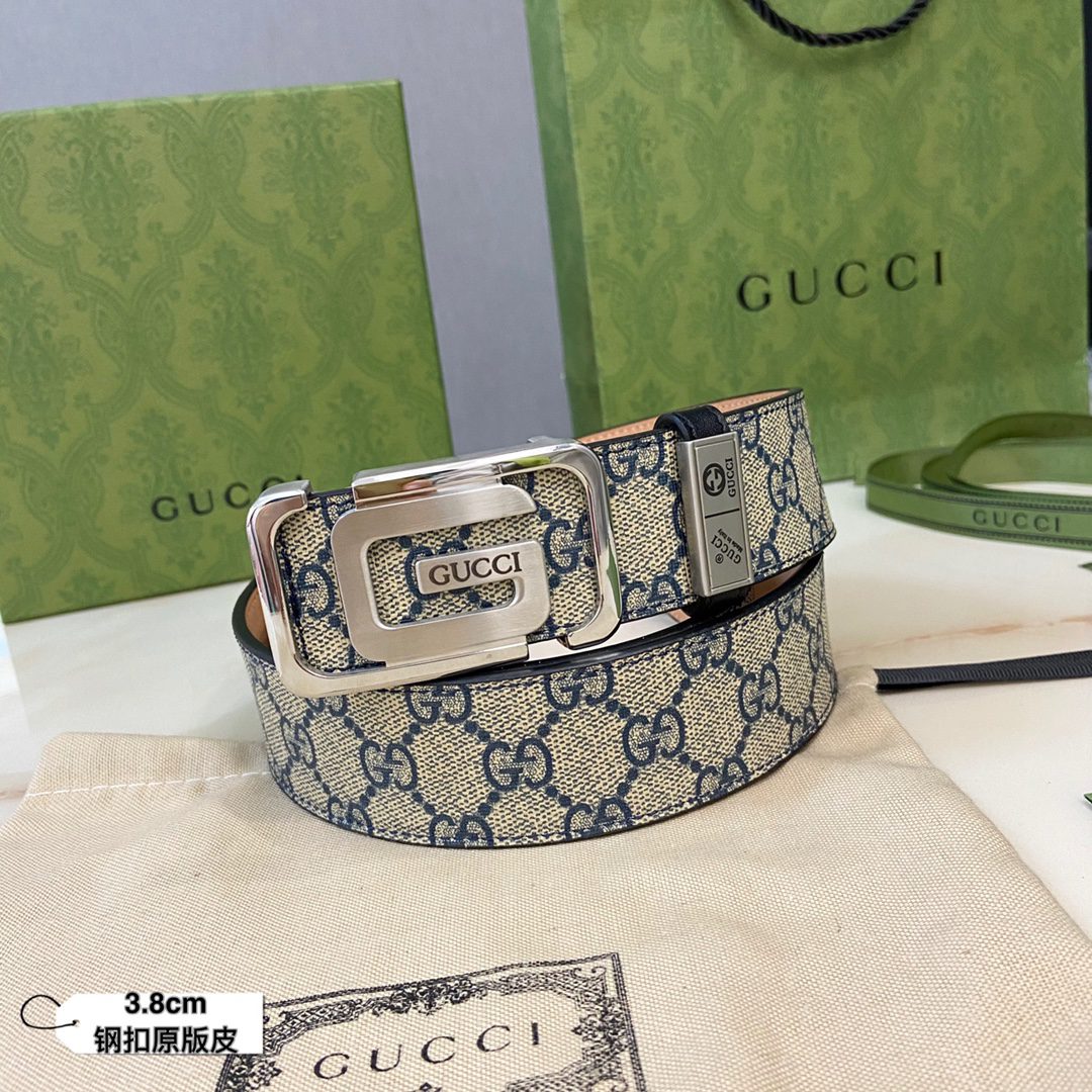 GUCCI Gucci Original genuine product, counter printed steel buckle blue cowhide, cm new arrival GUCC classic overseas original product, Italian creation, equipped with double G interlocking metal buckle, the original leather pattern can be taken away and the picture cannot be taken away. After the upgrade, it is zero distance from the genuine product, giving you a different visual effect, high-end customers are attracted. ㊙️㊙️㊙️㊙️D