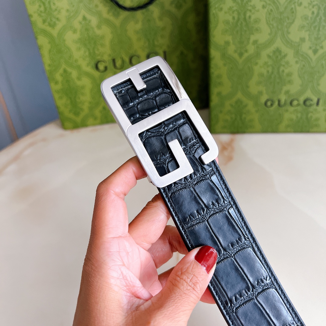 Home Belt Belt GUCCI original authentic product, cm new arrival double-sided leather crocodile pattern GUCCl