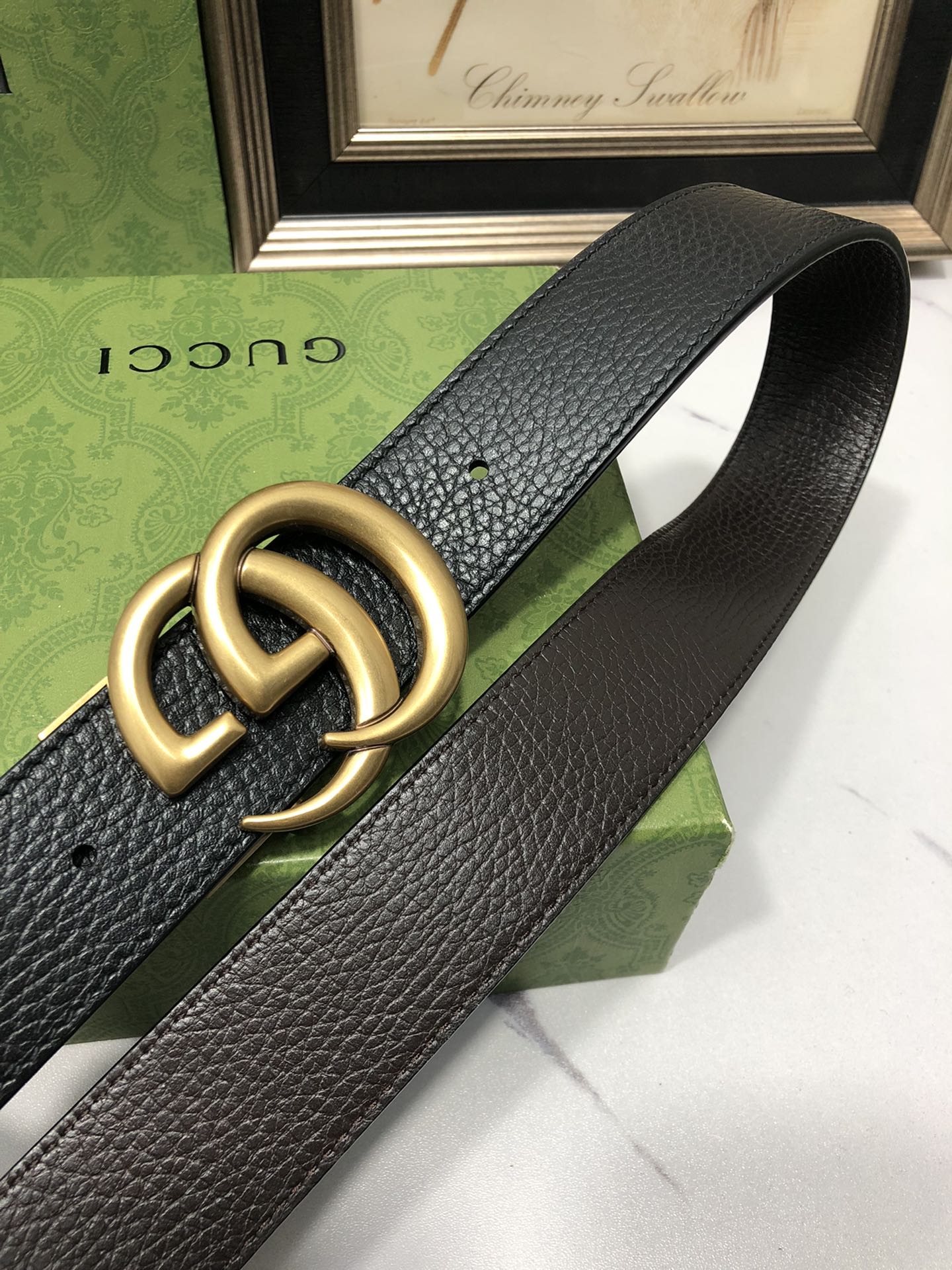 Home Belt Belt Gucci: Original double-sided first-layer cowhide leather belt with lychee pattern, black and brown two-color one-piece, front and back available, match the original single