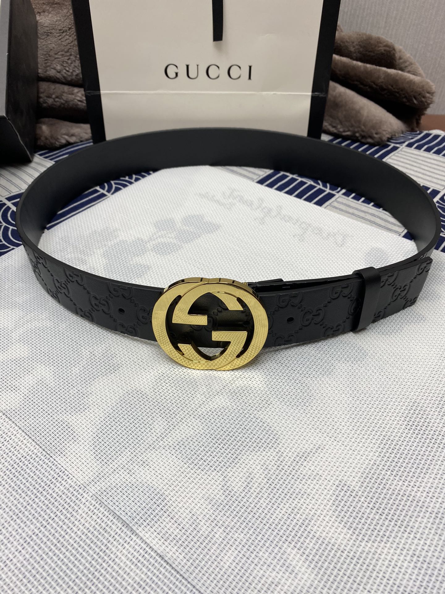 Belt Gucci: Original single-layer cowhide pressed on the G side, lined with first-layer calfskin bottom. Flat plate without stitching, with original single buckle. Original $129.00 Original price was: $129.00.$89.00Current price is: $89.00.