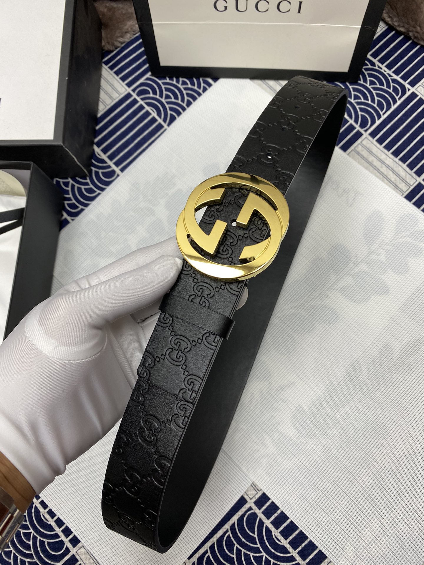 Gucci: Original single-layer cowhide pressed on the G side, lined with first-layer calfskin bottom. Flat plate without stitching, with original single buckle. Original single leather material customized, counter width