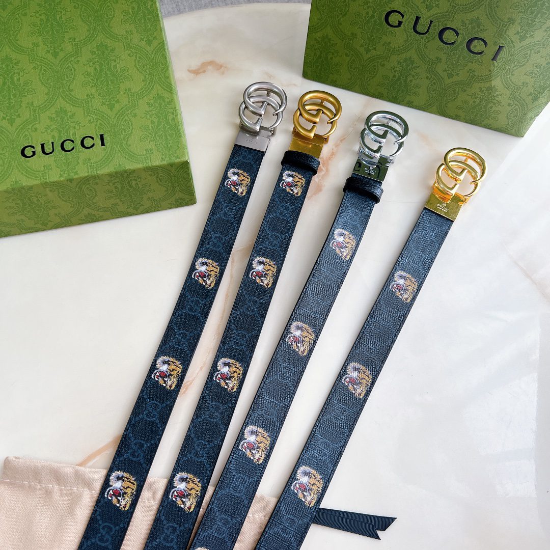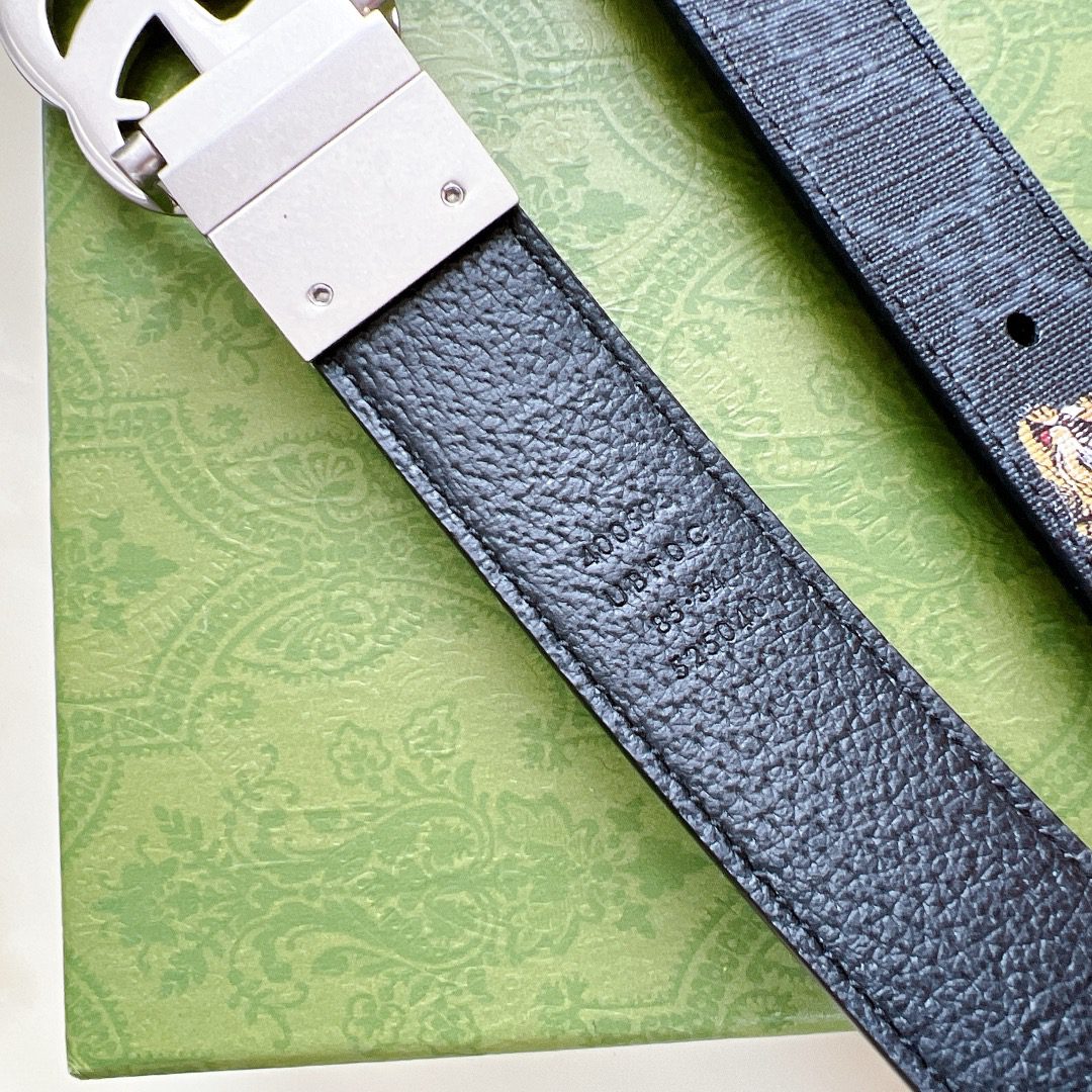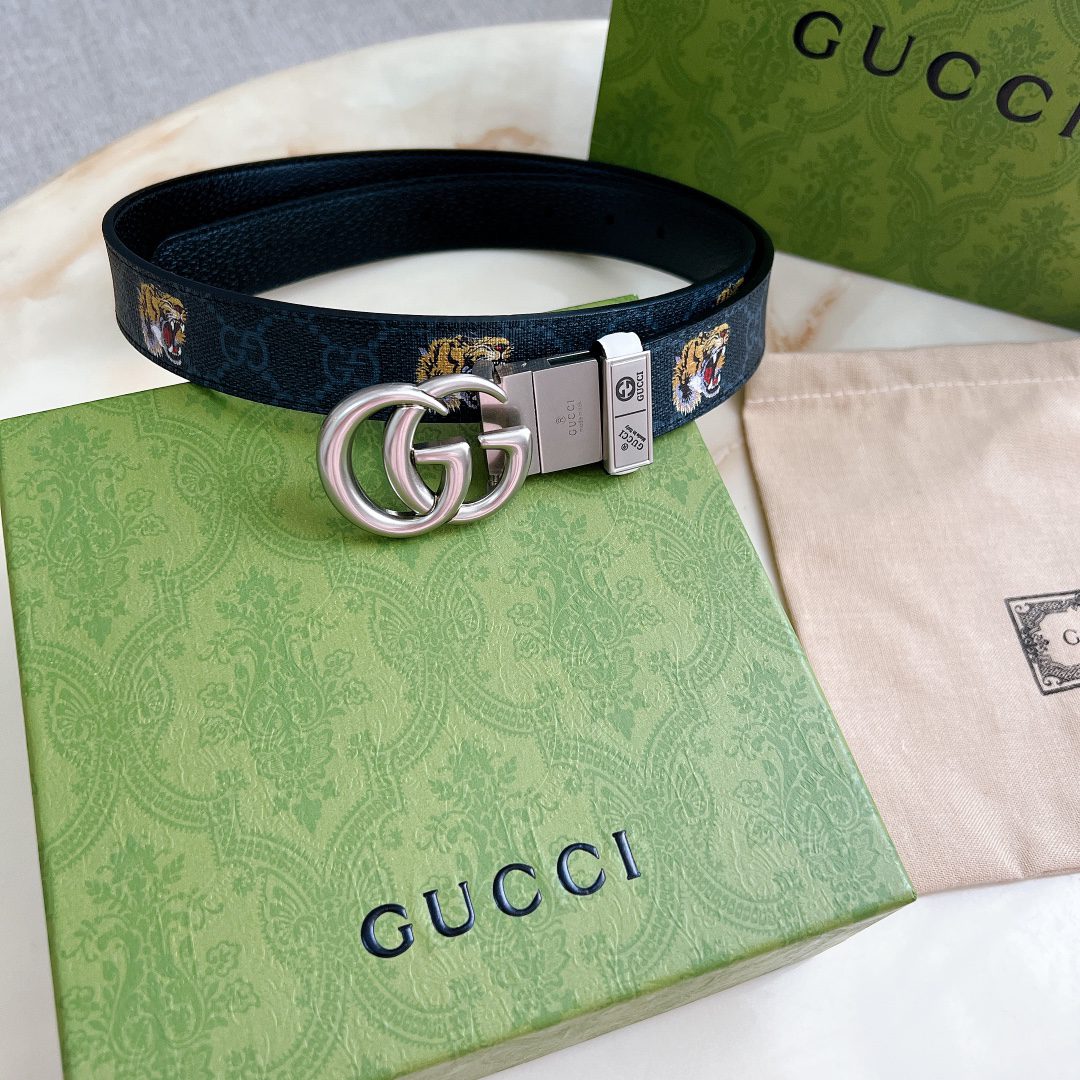 Gucci, width cm, new style reversible leather belt with print and pigskin texture. Accessories continue to lead the trend of Gucci’s new series, demonstrating outstanding quality with unique rich details and practical functions. The highly recognizable double G buckle element makes the entire belt more attractive D