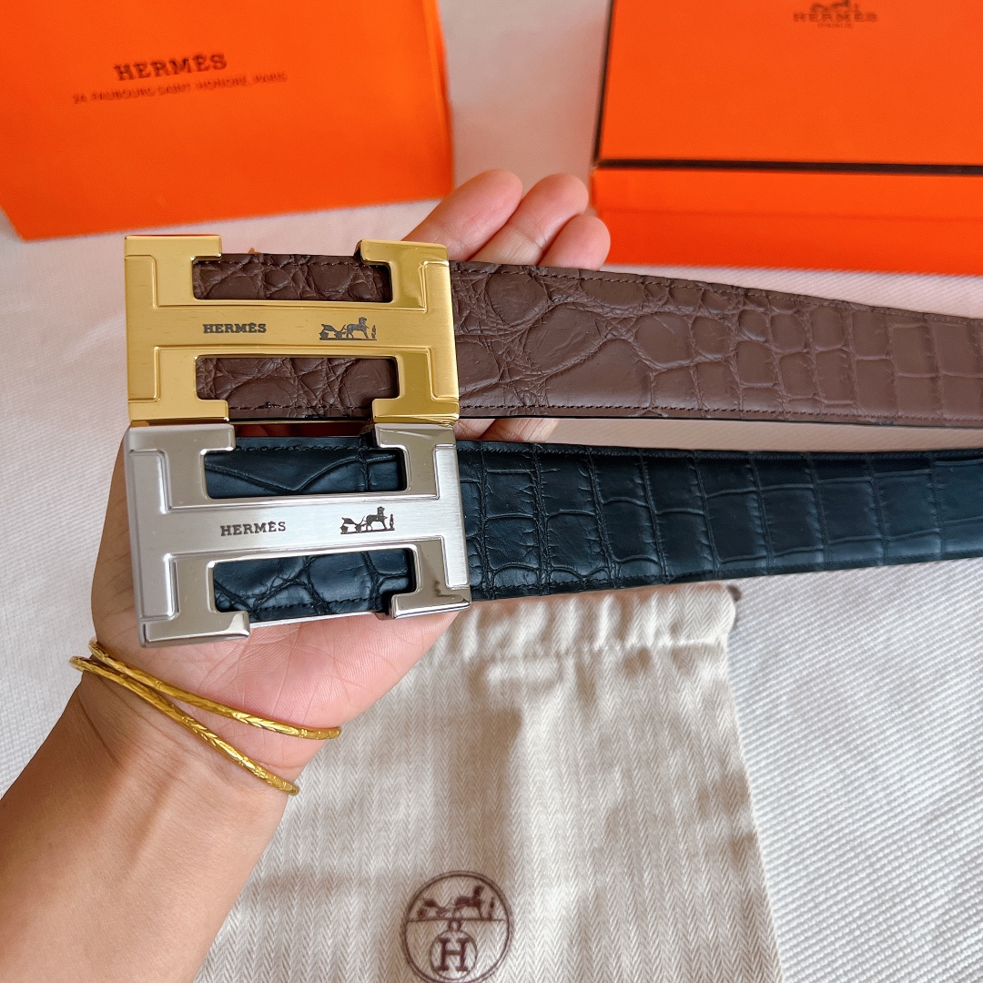 Belt Hermes cm double-sided crocodile leather pattern Hermès exclusive high-quality steel buckle with diamonds, with