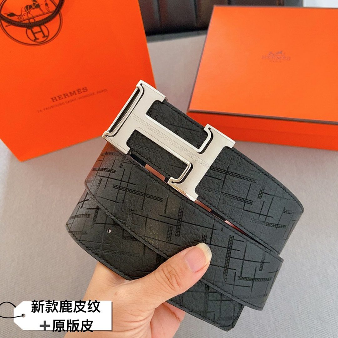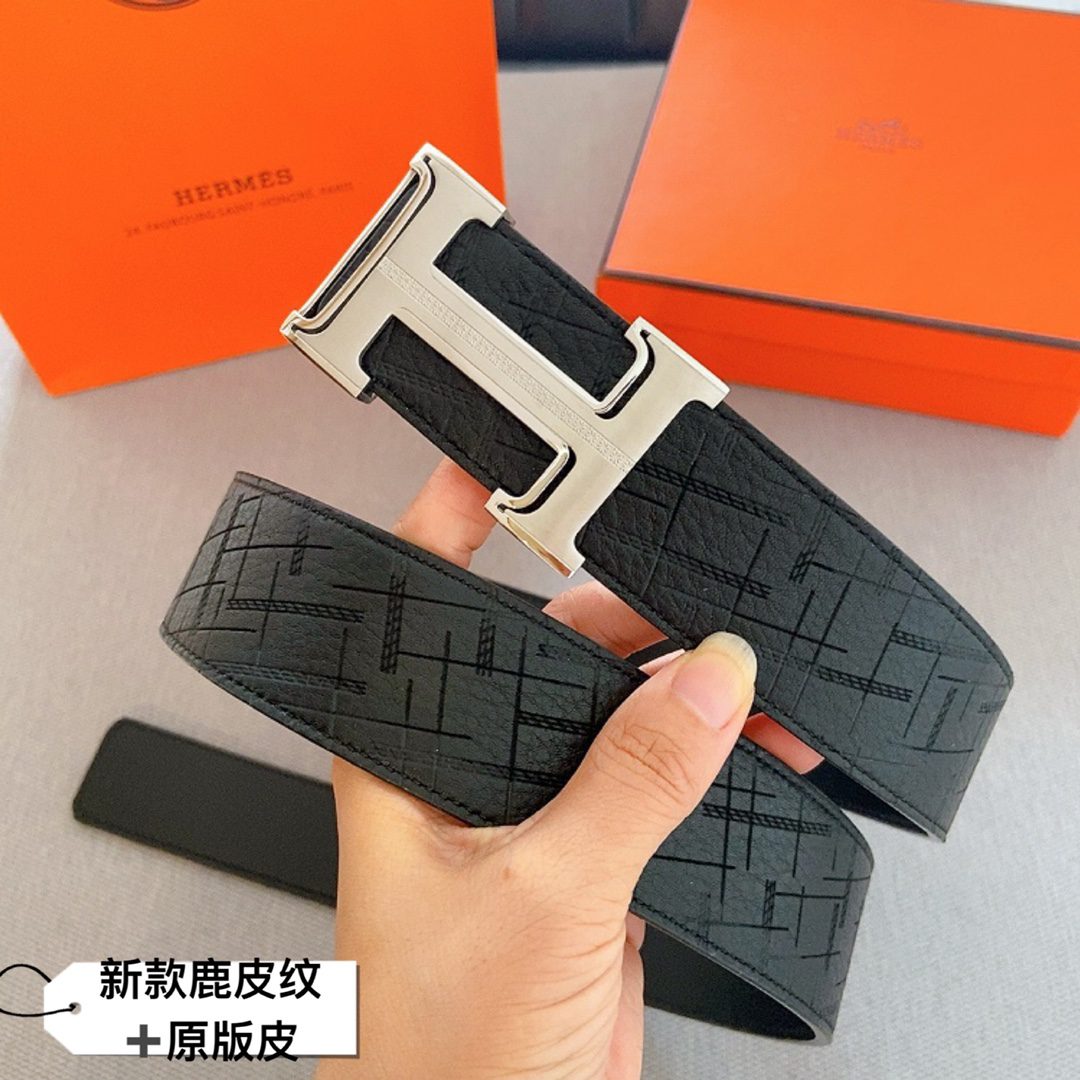 Home Belt Belt Hermes cm double-sided original leather, buckskin pattern🦌Hermes special steel buckle