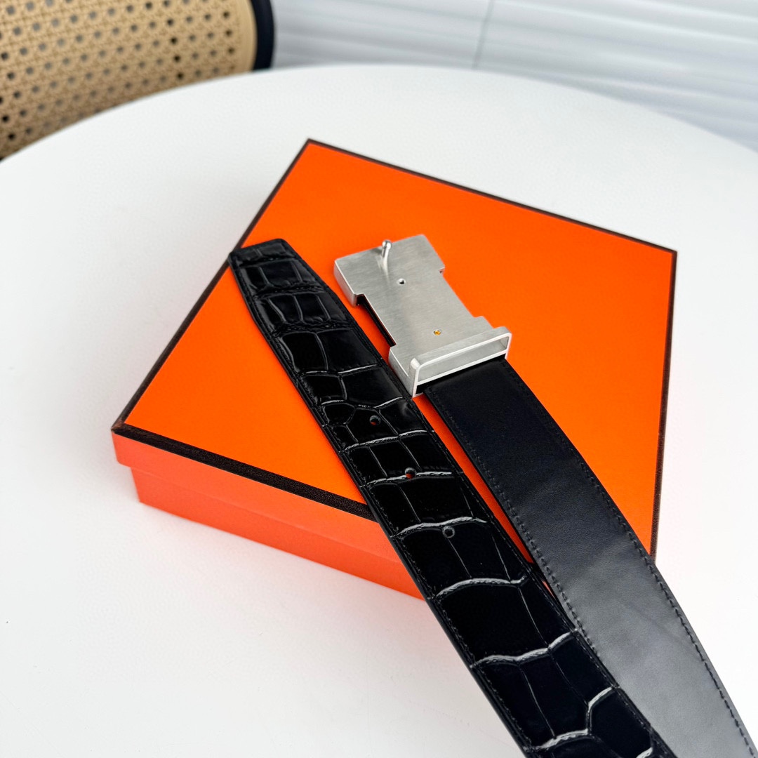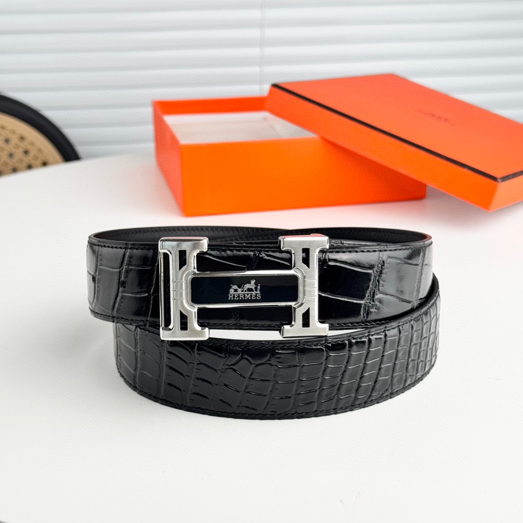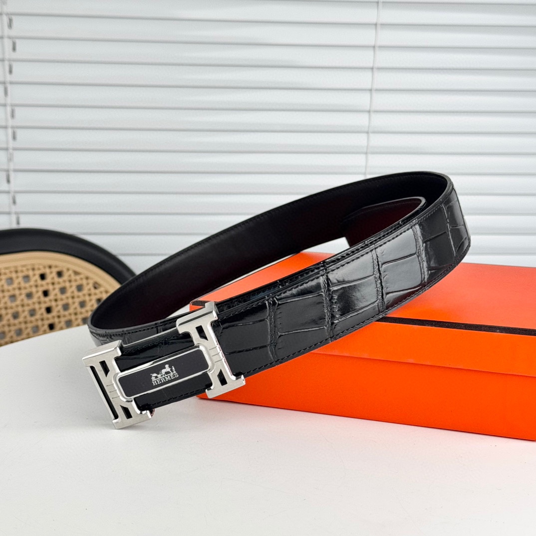 Home Belt Belt Hermes crocodile pattern cm double-sided original leather, Hermes special steel buckle,
