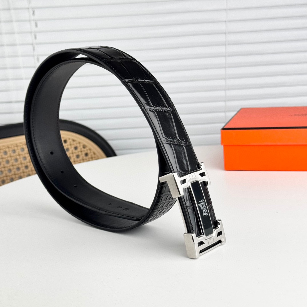 Belt Hermes crocodile pattern cm double-sided original leather, Hermes special steel buckle,