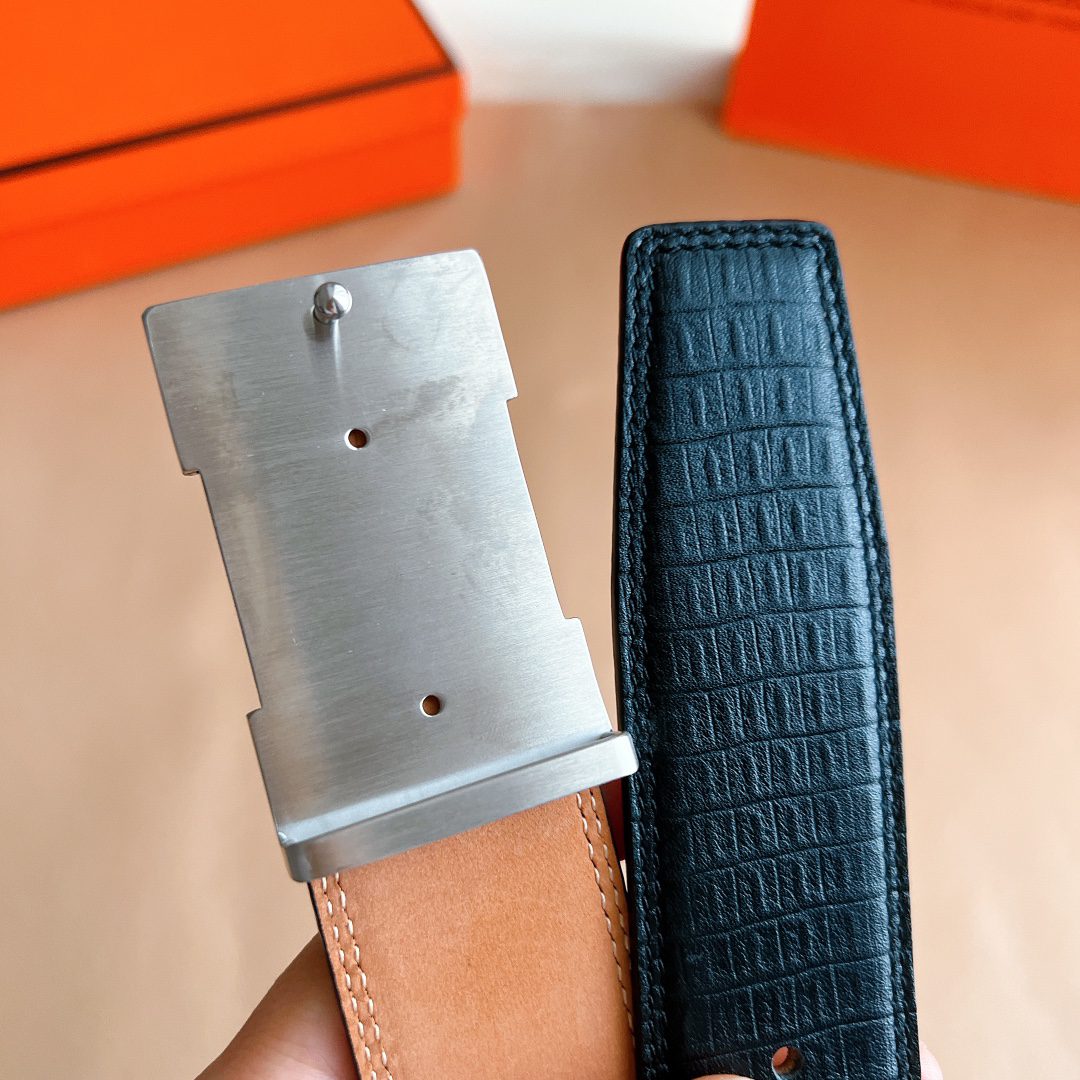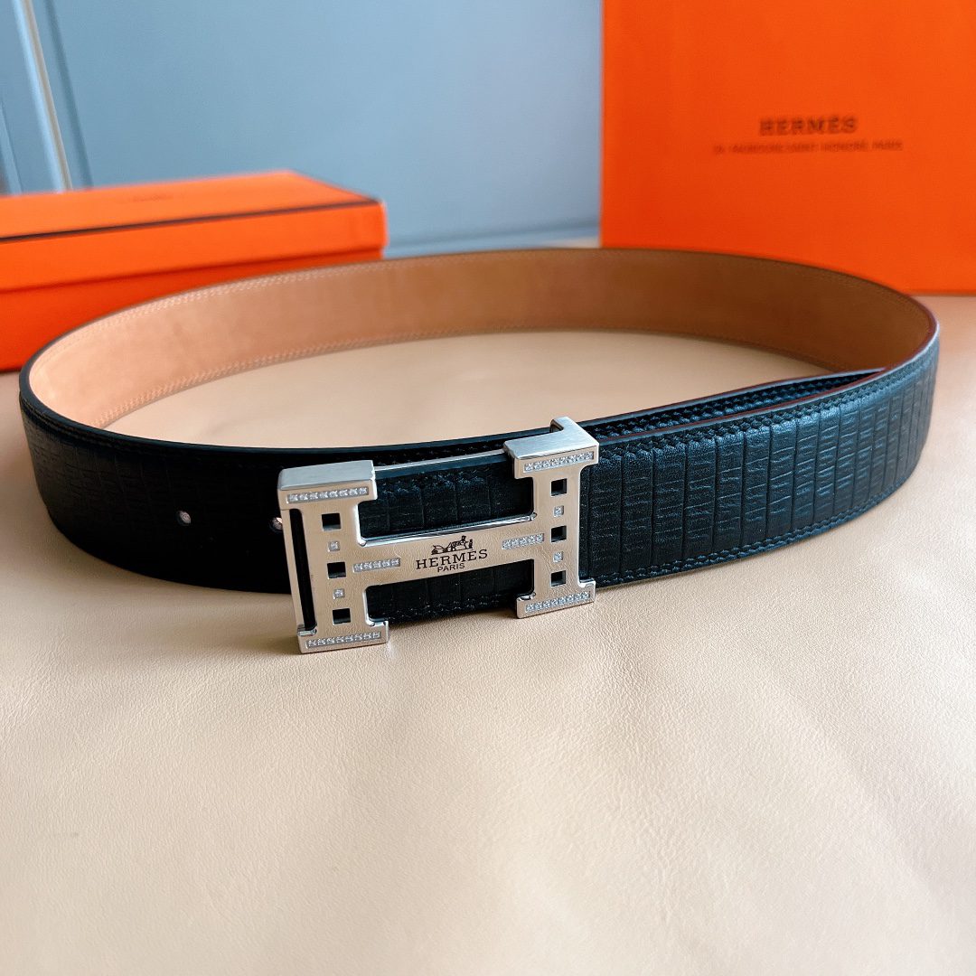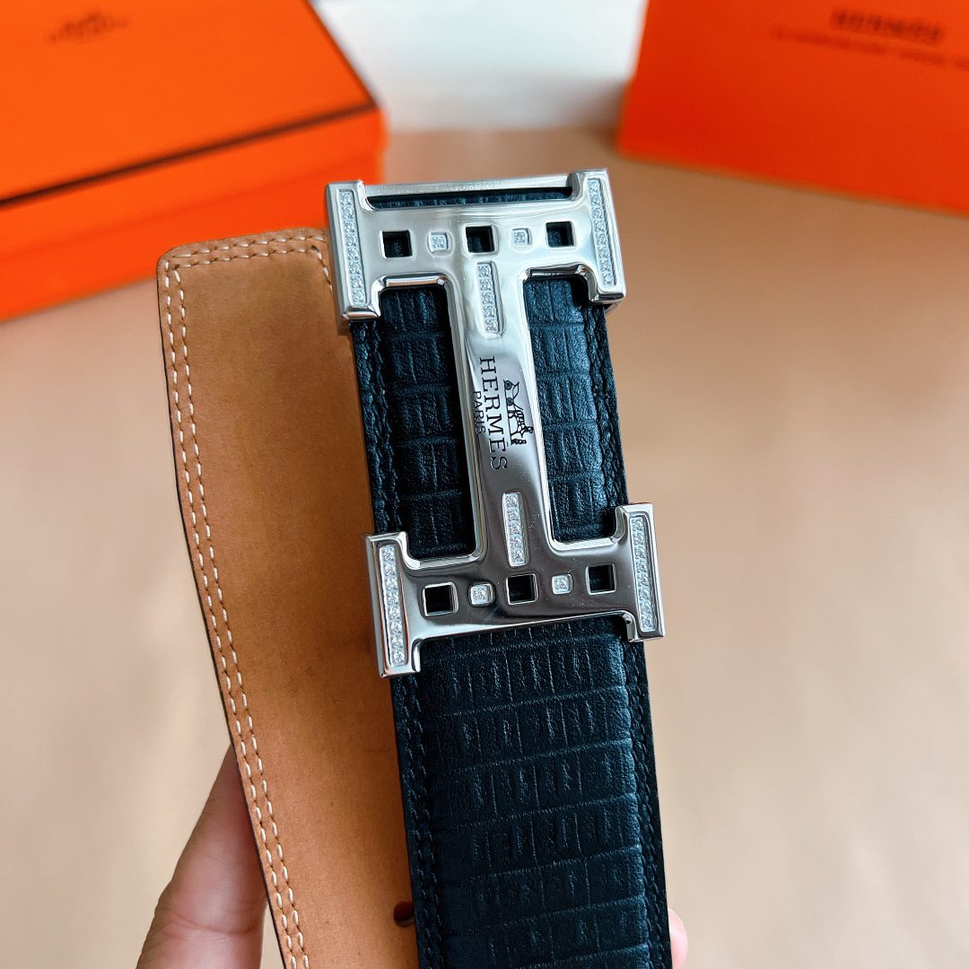 Belt Hermes diamond-encrusted steel buckle, handmade cm double-sided original leather, exclusive for Hermes