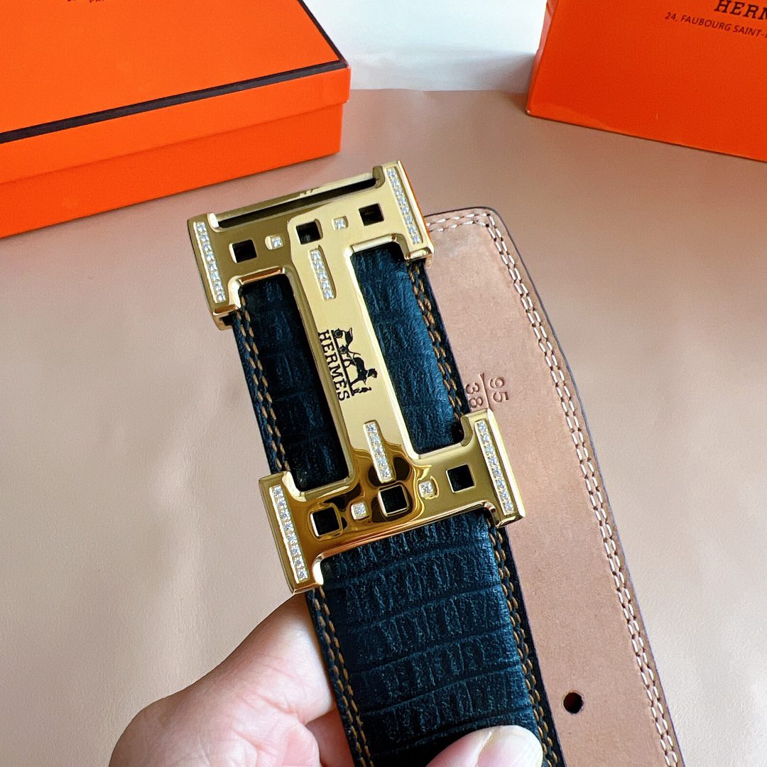 Belt Hermes diamond-encrusted steel buckle, handmade cm double-sided original leather, exclusive for Hermes
