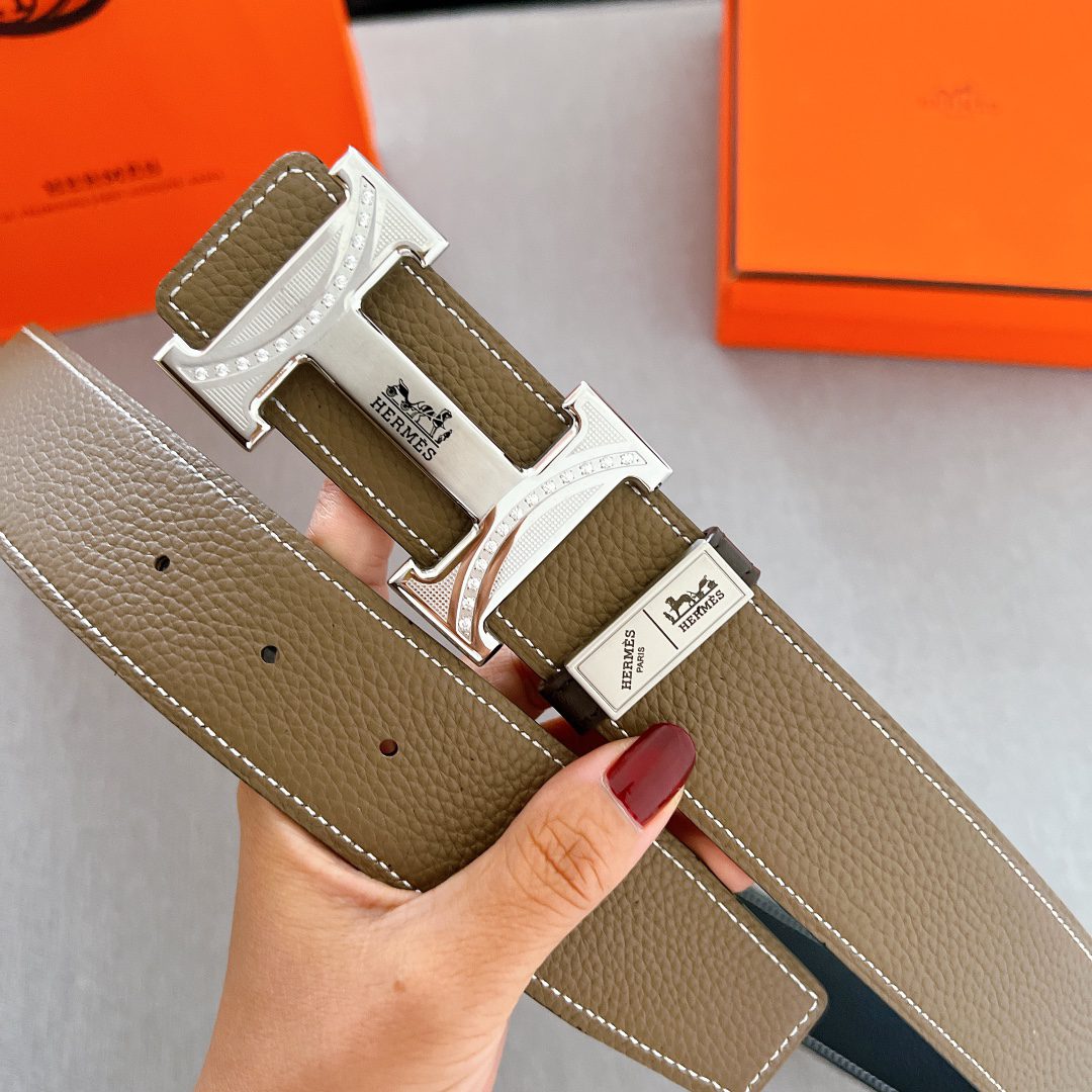 Belt Hermes diamond-encrusted steel buckle, handmade cm double-sided original leather, exclusive for Hermes