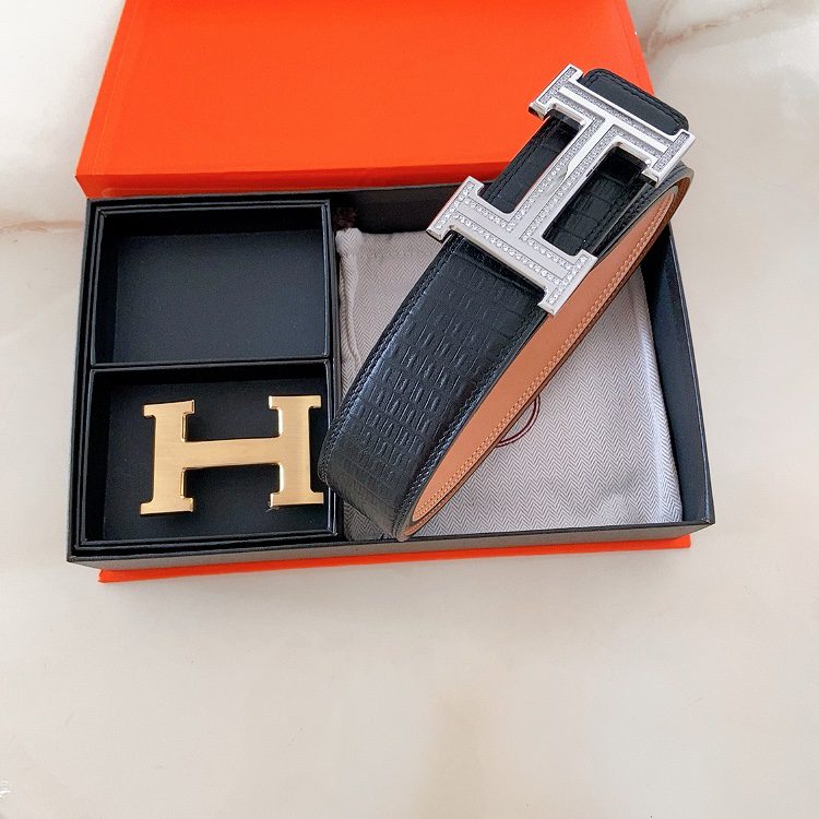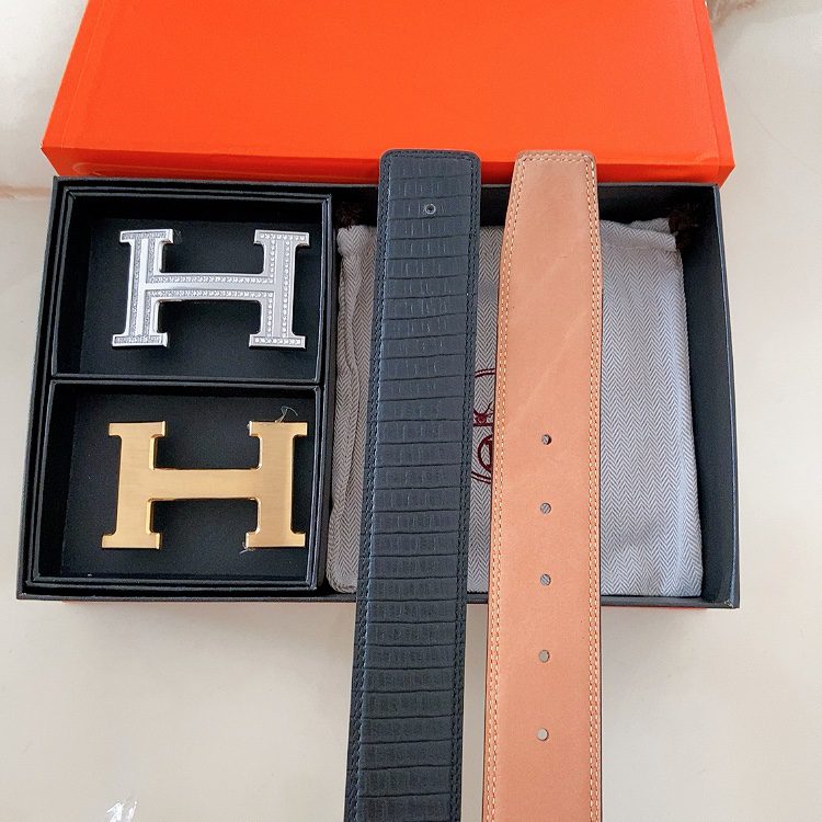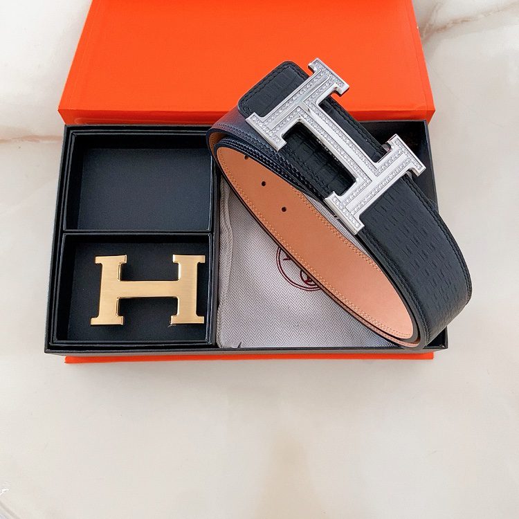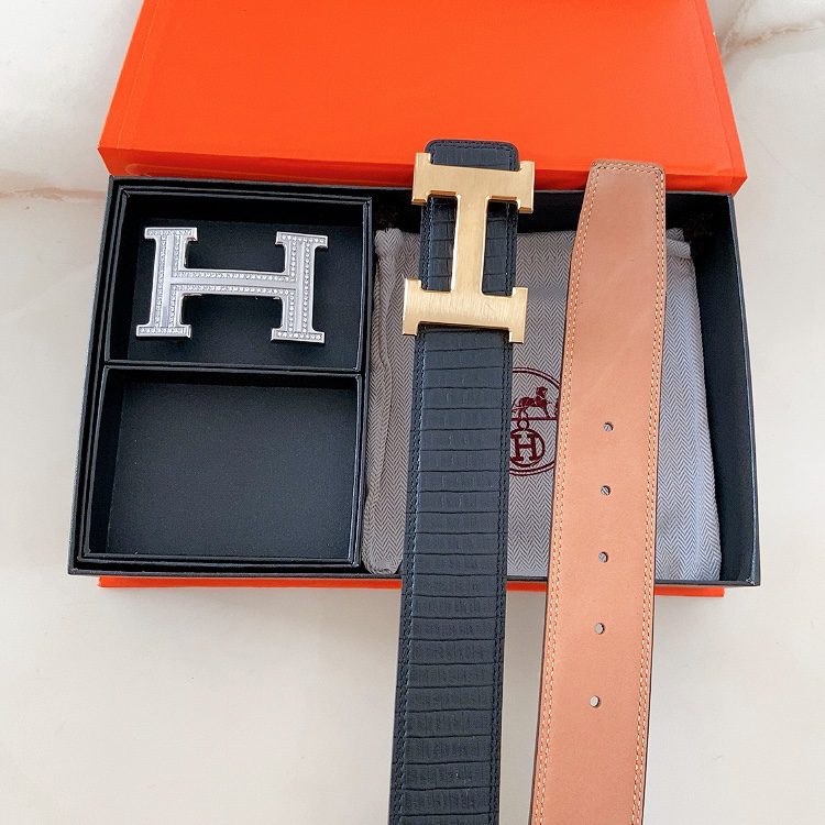 Home Belt Belt Hermes double buckle cm double-sided original leather, steel buckle shark 🦈 pattern Hermes
