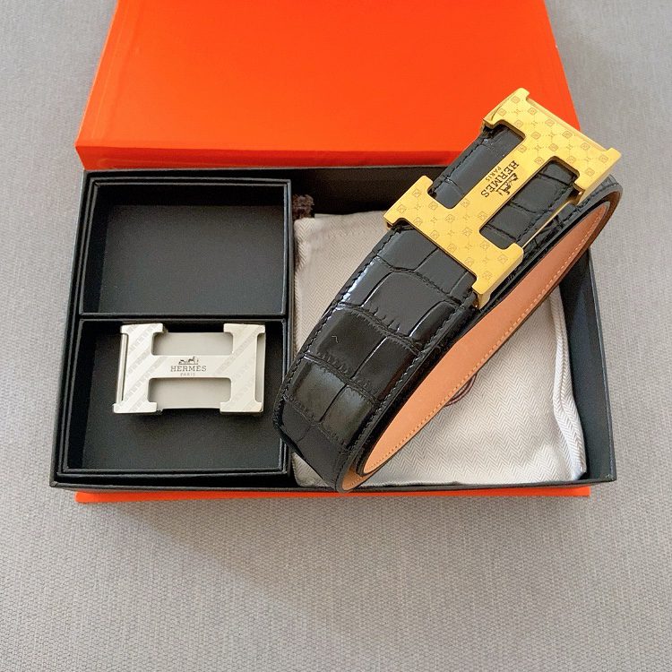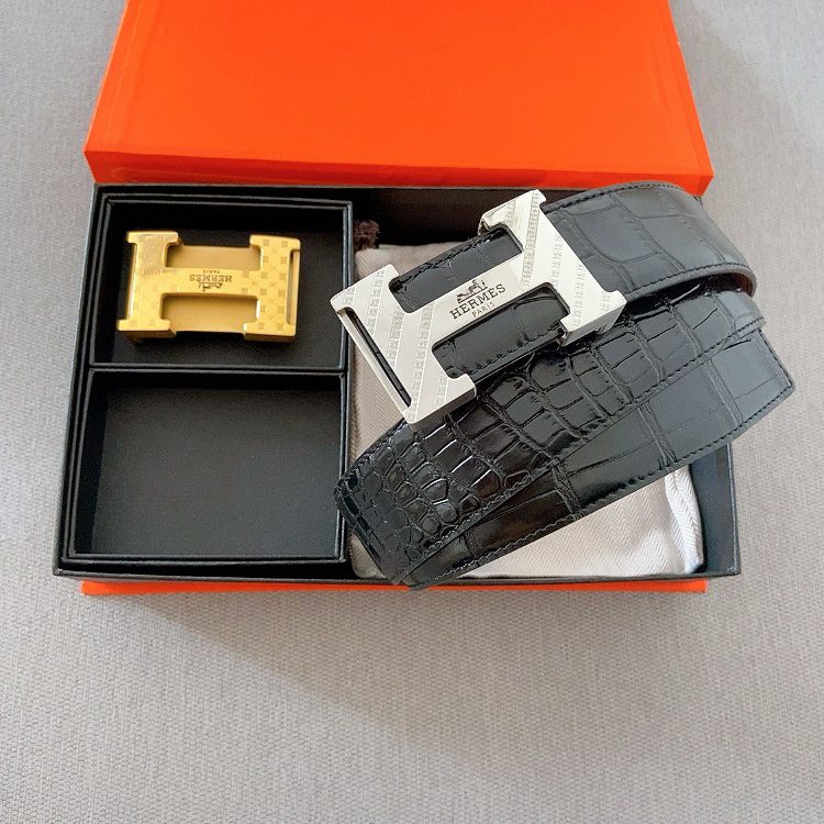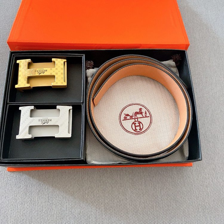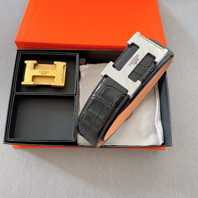 Home Belt Belt Hermes double buckle cm double-sided original leather, steel buckle shark 🦈 pattern Hermes