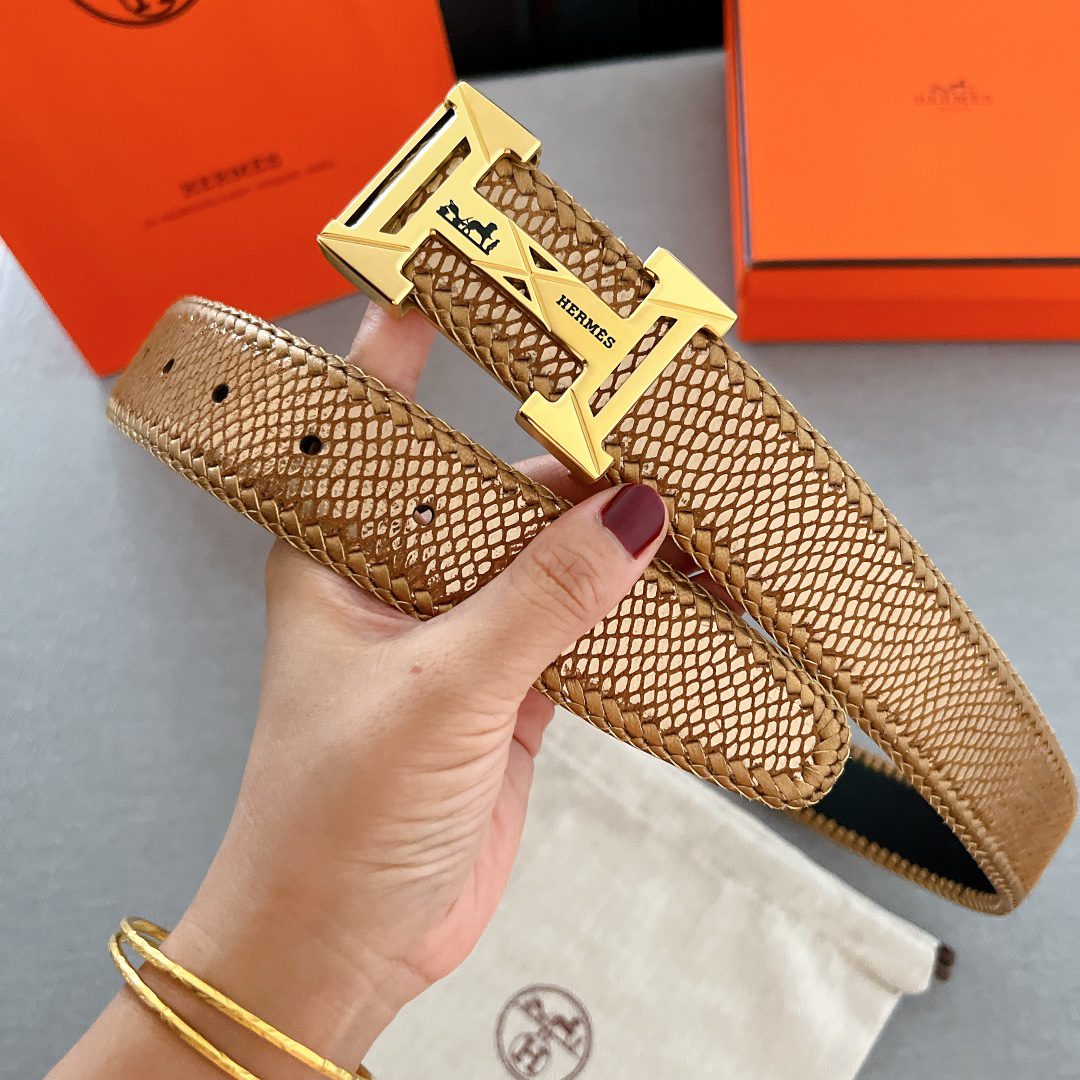 Home Belt Belt Hermes hand-woven 1cm double-sided original leather, Hermes special steel buckle