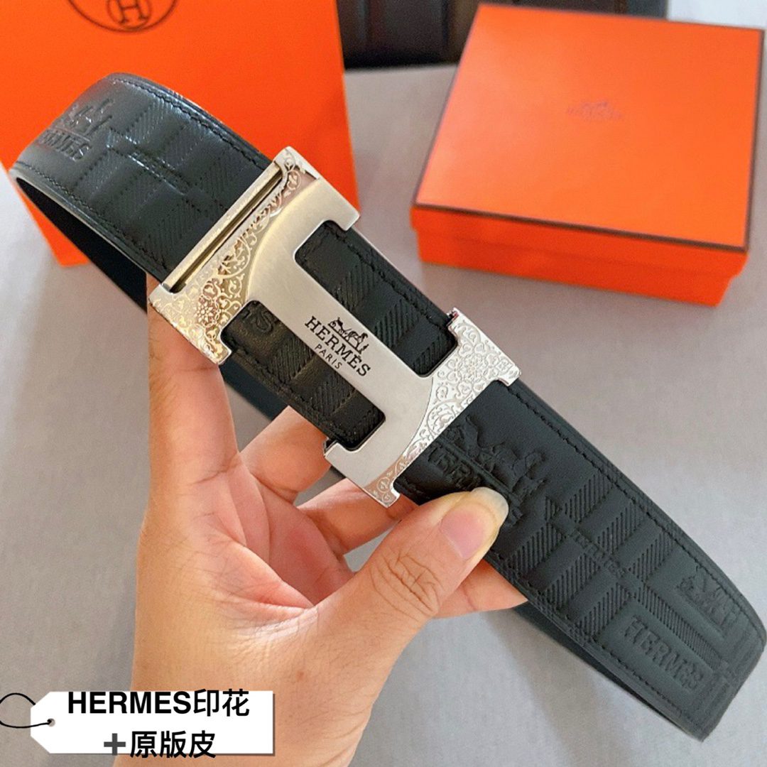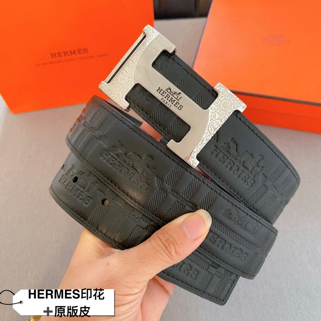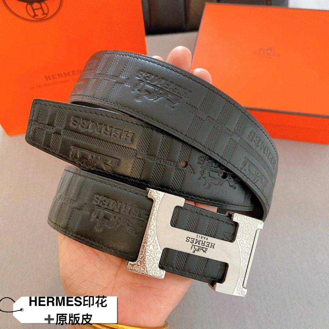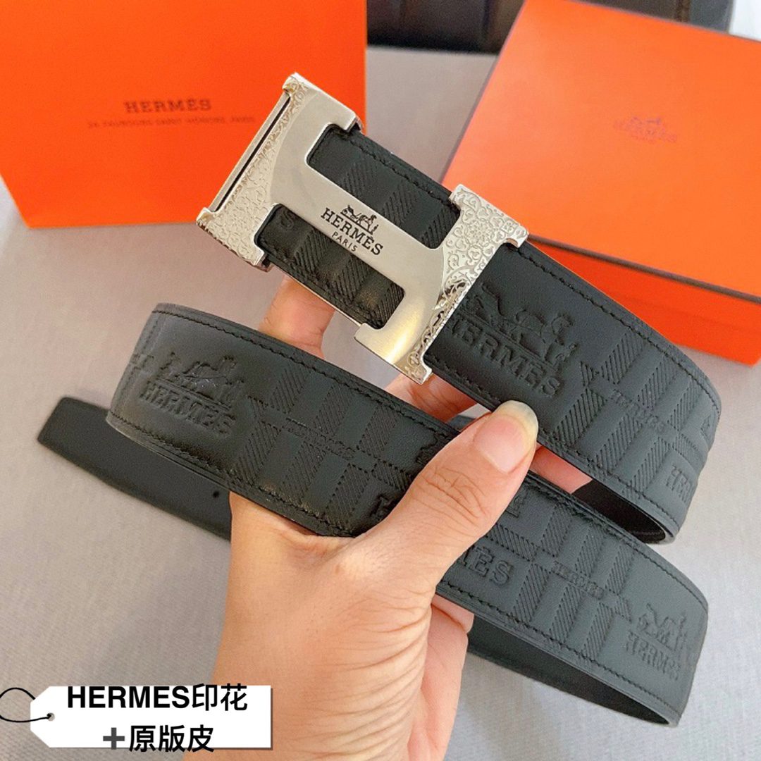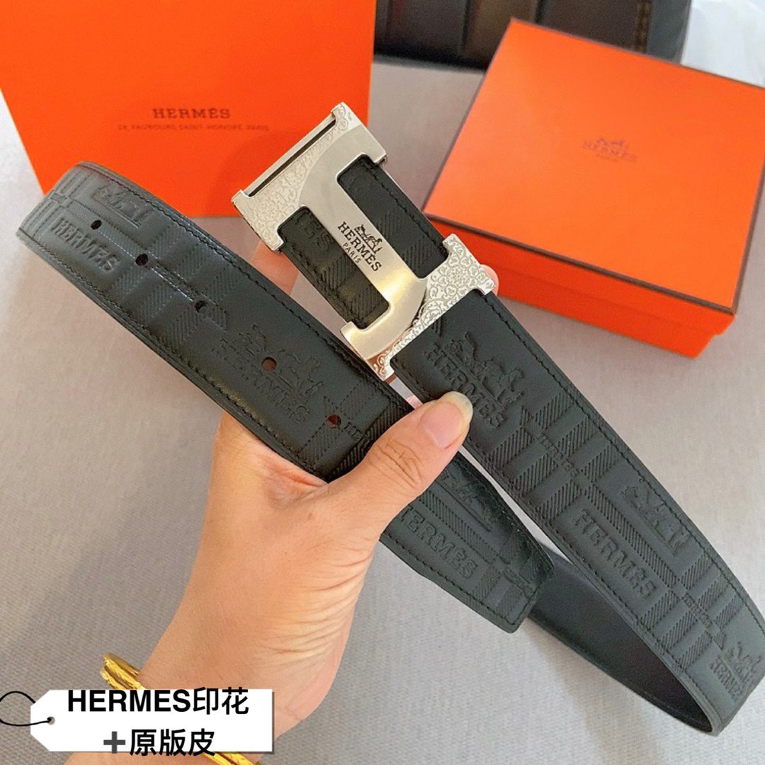 Belt Hermes (Hermes) cm double-sided original leather, printed Hermès special steel buckle, belt
