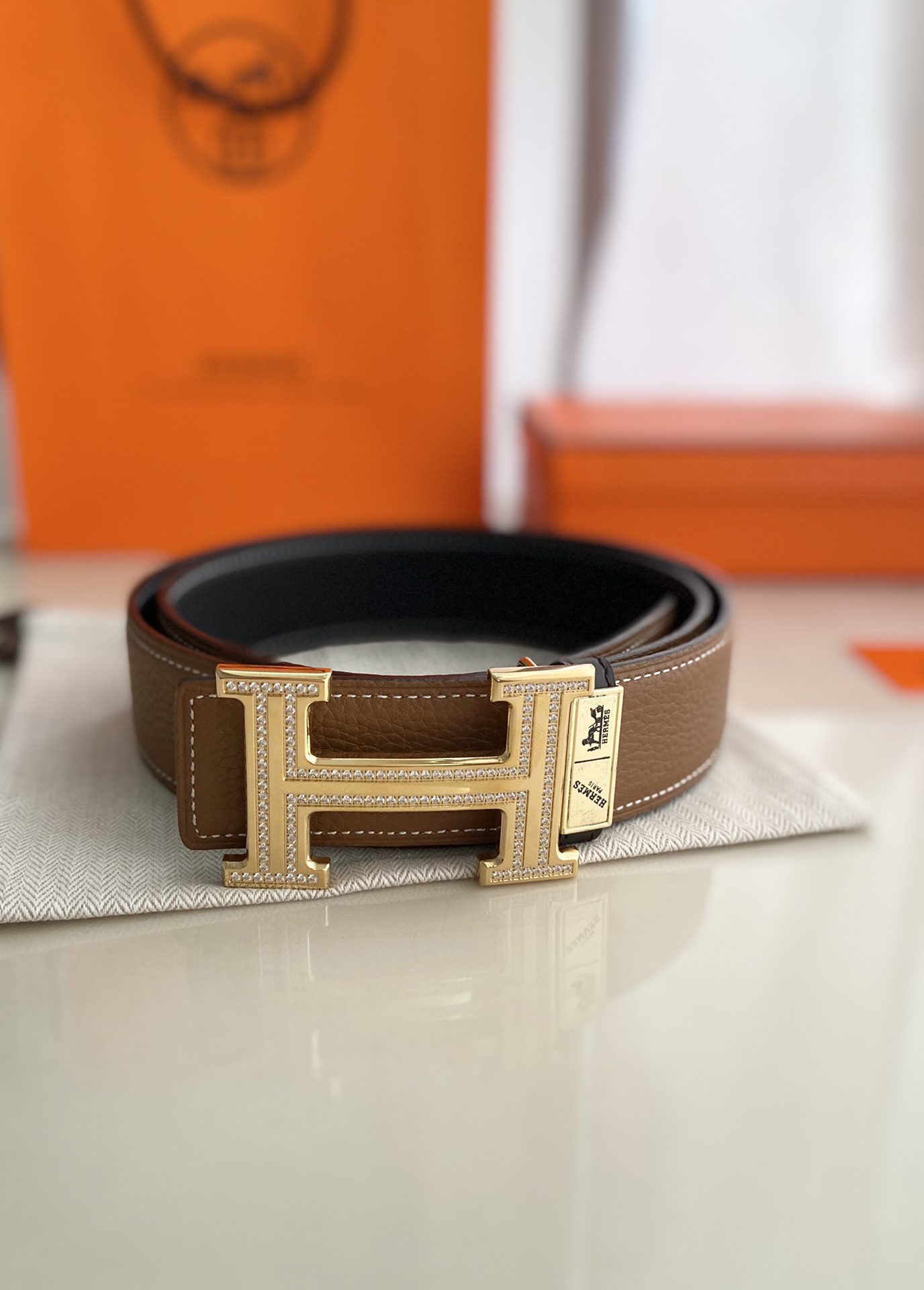 HERMES (Hermès) width 40mm counter same style double-sided belt double-sided first-layer original leather original stitching original single quality low-key luxury unique fashion casual style D0