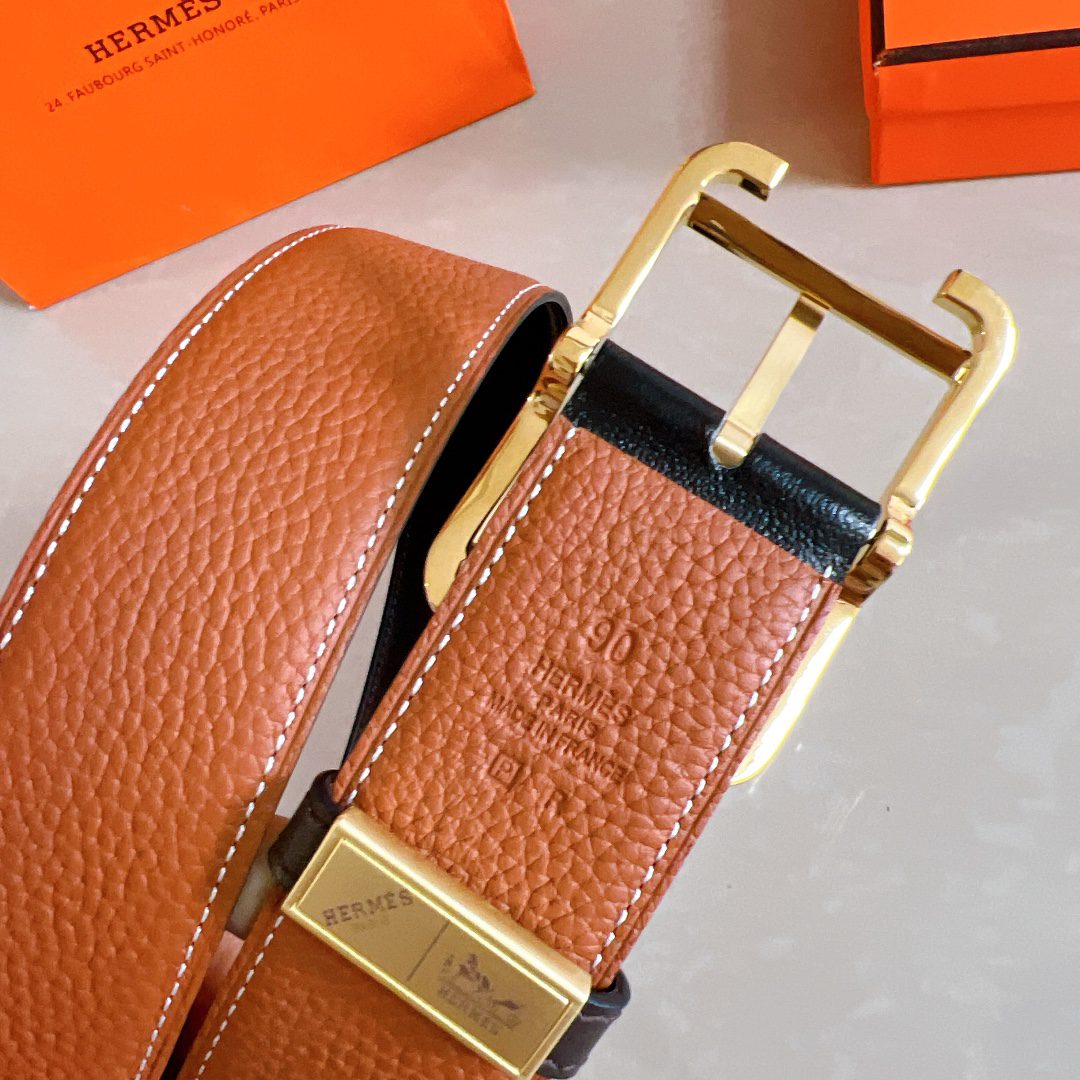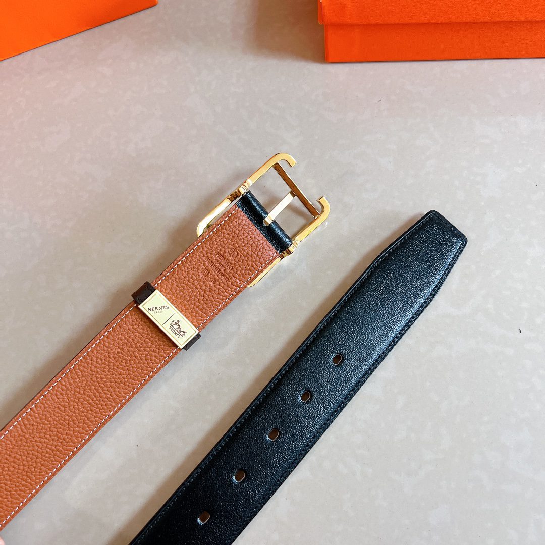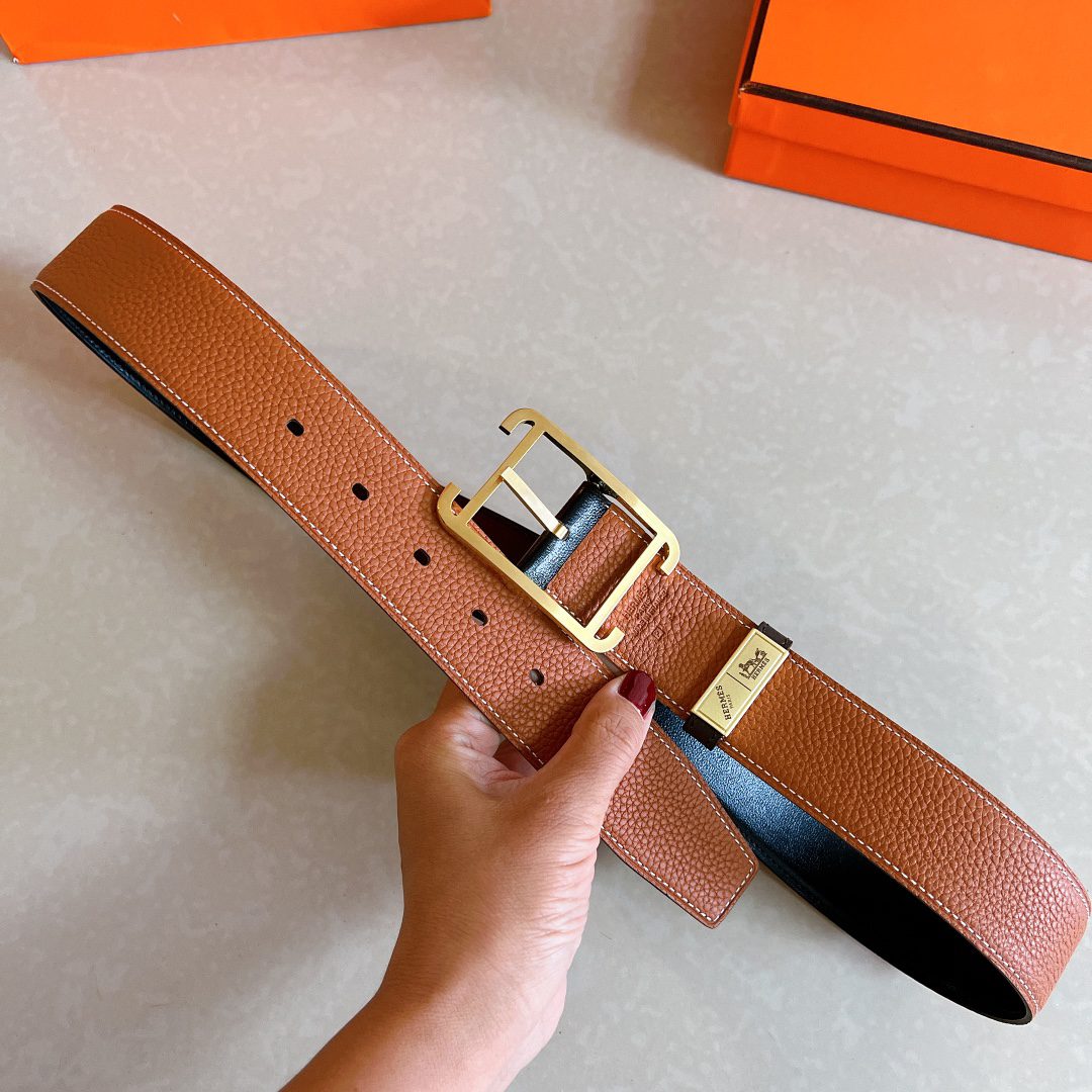 Hermès Hermès pin buckle belt, original quality, double-sided leather with pebbled pattern + imported cowhide, mm width, double-sided, with official website H gold buckle D
