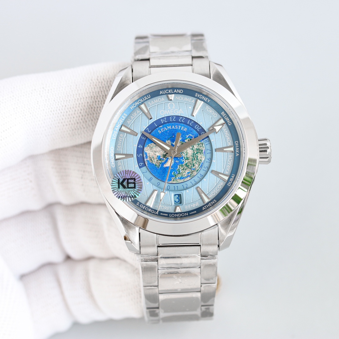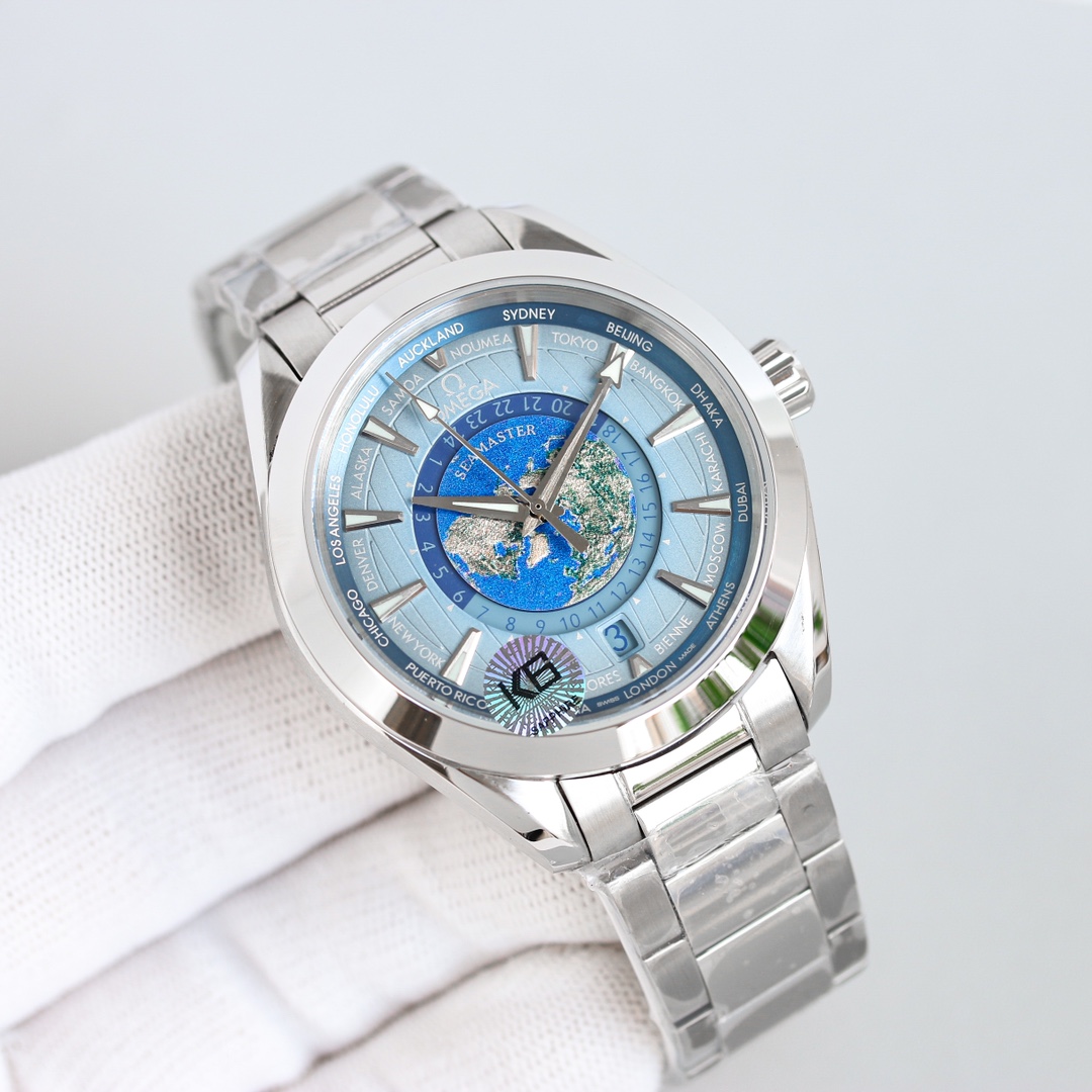 [Highest quality version] The new Haima AT World Time has been upgraded, and its configuration and appearance have been further improved. [Size]: 4 [Different from the ordinary version on the market, the world time can be adjusted individually and quickly] [Mirror]: Sapphire crystal glass Air double-layer colorless coating [Air coating makes the mirror more transparent, and the time can still be read under strong light] [Pointer]: Stainless steel polished pointer {No copper embryo pointer is used, because the stainless steel polished pointer does not require electroplating after treatment, the process is difficult and the cost is high. But the three-dimensional effect is extremely strong. The polished cut surface is smoother [Dial]: All textures are formed in one piece, fully reflecting its three-dimensional effect. It is composed of multiple layers of dials that are overlapped and fixed. The northern hemisphere world time in the center of the dial is made of enamel technology, and the overall dial presentation is very perfect. Aqua Terra has moved the ‘Colored Earth’ onto the dial. This unique design is also quite explosive in the watch circle!