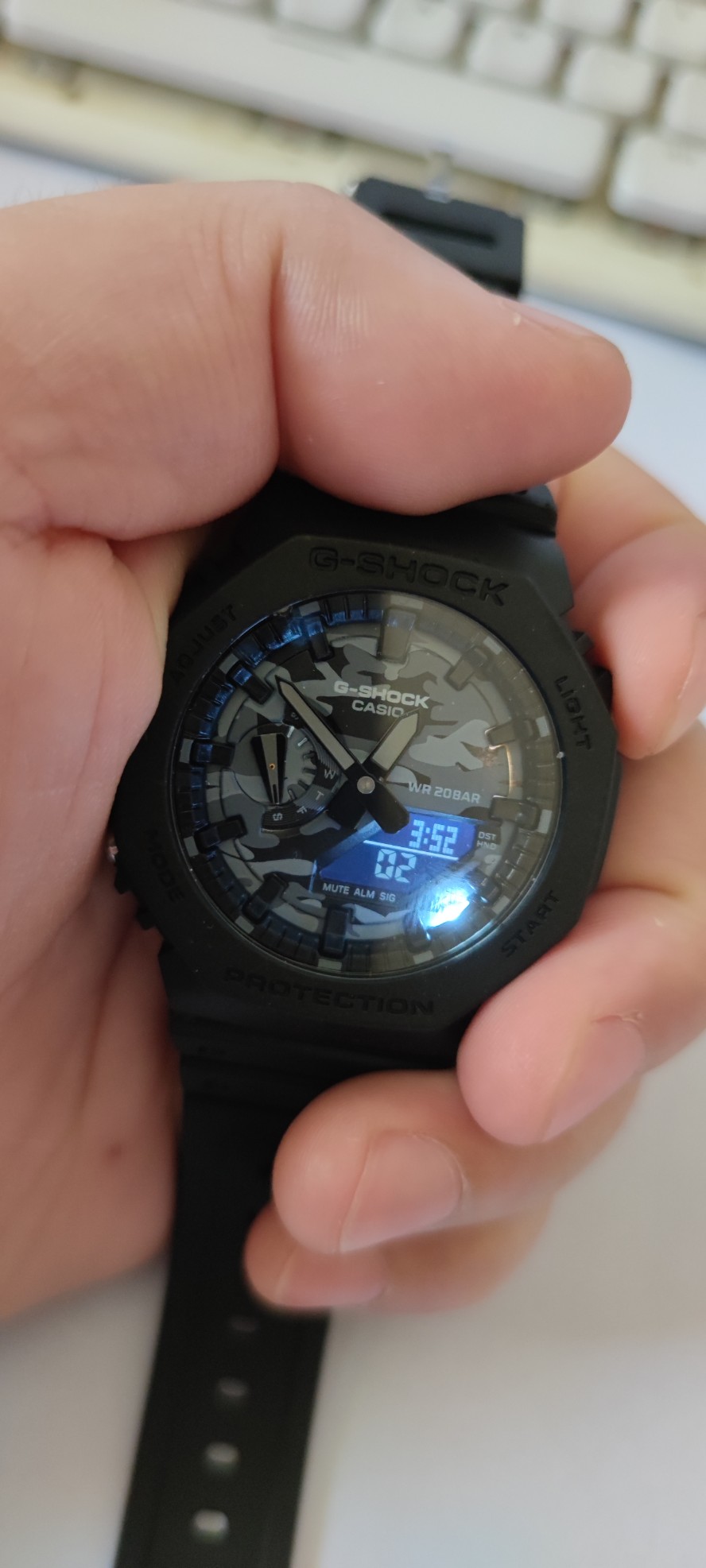 Hot sale! Casio G-SHOCK’s new small cube ice tough series! The new GA-20 Casio octagonal model, ultra-thin dial, sourced from Xiaohongshu channels, the mirror becomes transparent when exposed to water, single-buckle strap design, simple display screen, and the chance of being tested by the Dewu (Poison) APP. If you want to get one, place an order now! Main functions: shockproof, meter waterproof, high-brightness automatic LED lighting, world time (48 cities), stopwatch (0 seconds), 24-hour time format, daily alarm, hourly chime, countdown, fully automatic calendar