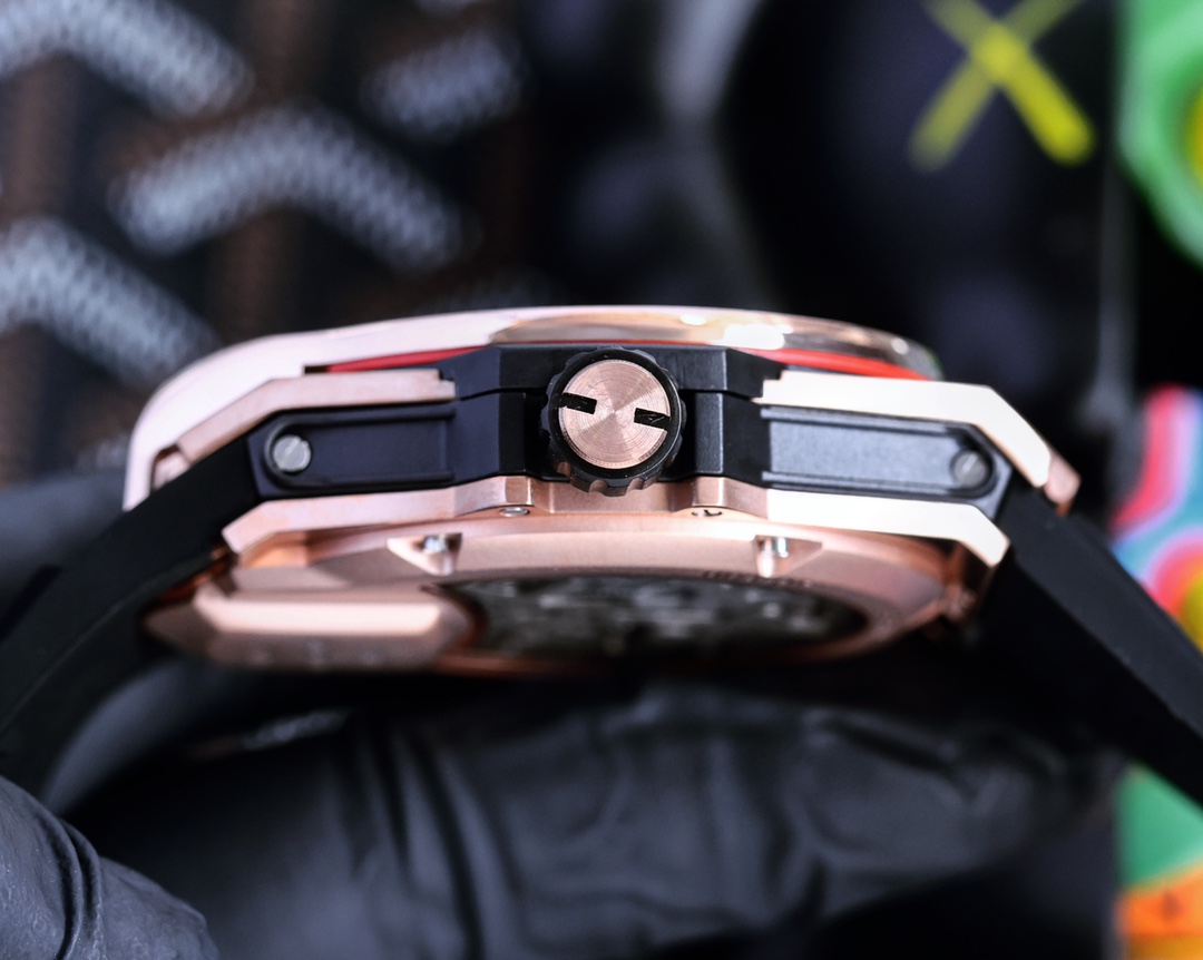 Hublot HUBLOT Warcraft MP series 909.NX..RX.4 Polished metal case Artificially inlaid with 207 zircons Anodized red aluminum lower structure with 6 H-shaped metal screws Equipped with an original imported mechanical movement HUBLOT Hublot codename (Warcraft) handed down MP-09 two-axis tourbillon watch Hublot’s first multi-axis tourbillon watch brings a new perspective Size 45mm The rubber strap with original buckle has a strong sense of future technology and the unprecedented design brings you a visual impact.
