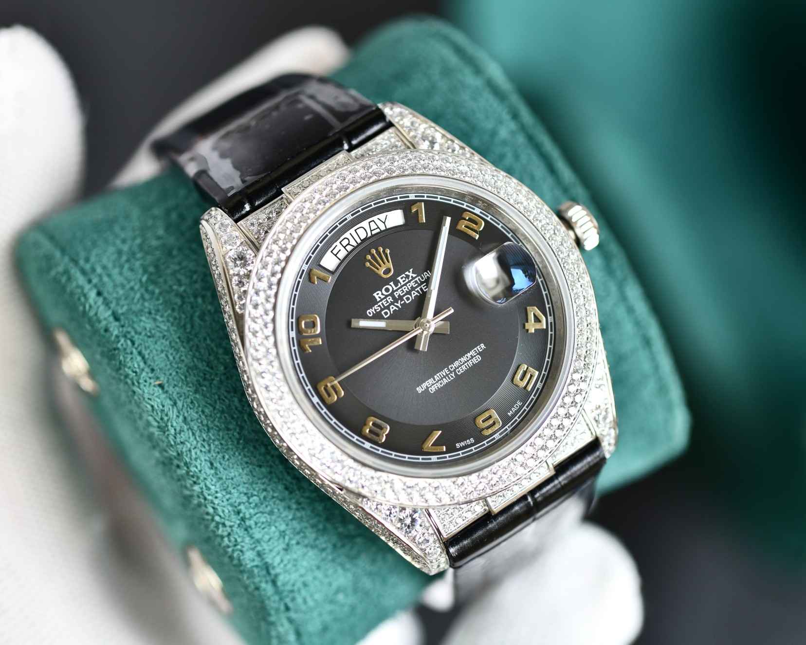 If you want to show your identity, please show off your ROLEX Datejust Star Alligator Leather Series Watch. Made of pave-set top-grade Swarovski diamonds, it is an interpretation of luxury quality, dazzling and perfectly demonstrating the spirit of craftsmanship. Luxurious and noble, a status symbol, suitable for important occasions! 4 steel, paved with top quality Swarovski diamonds. Size: diameter 40mm. 4⃣️The watch strap is made of American crocodile leather with an original folding buckle clasp, and the connection to the watch case is more detailed and optimized! The details of the buckle are also engraving! ‼ ️Re-engraving a sincere masterpiece, let us work together once and for all! I have always dreamed of it, and now I can have it! Produced by ZY