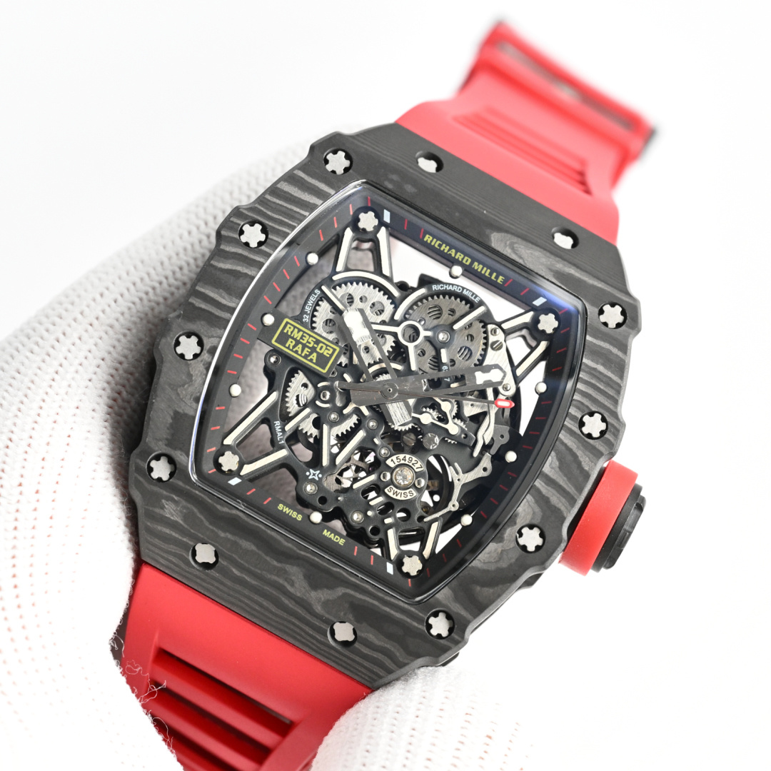 [Integrated movement, white stone shock absorber] “RICHARD MILLE” Richard Mille L88. RM 2 is the first piece in the series to be equipped with an automatic movement, and it ingeniously uses all carbon fiber materials to make the entire case. The watch case is made of NTPT carbon fiber, which is characterized by lightness, color retention and durability, and the surface texture is fine and natural and unique; the watch case has super impact resistance and can easily withstand any strenuous exercise. The case is slim and fits the hand. The original size is: 49.94×44.5x5mm. It is equipped with RMAL0vph. The double barrel provides 55 hours of power storage. The main plywood and bridge plates of the movement made of grade 5 titanium are decorated with PVD coating, which is full of modern aesthetics. Even people who are not too obsessed with technology can appreciate the unique mechanical aesthetics. (Note: True integrated movement, moving balance spring, white sapphire shock absorber on the movement surface, white sapphire shock absorber and adjuster outer pile on the bottom of the movement, real movement gears, 2 especially a striking luminous pattern is added to the top of the hour, minute and second hands to facilitate reading without compromising its transparency. The back of the watch is made of anti-reflective sapphire crystal glass, allowing people to appreciate the details of the movement through the oscillating weight.