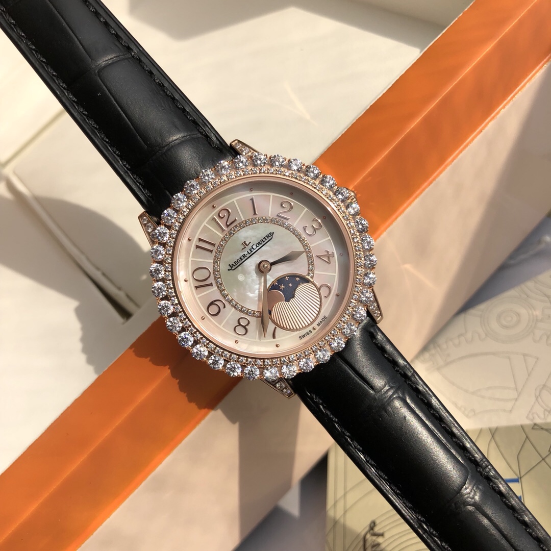 Jaeger-LeCoultre Date Master 20L stainless steel, sapphire crystal, mother-of-pearl diamond dial, three-dimensional numerals with real nails! The “moon” floats in the “night sky” of aventurine, creating a three-dimensional effect! Wearing an imported cowhide strap, diameter .8mm, imported Swiss quartz movement