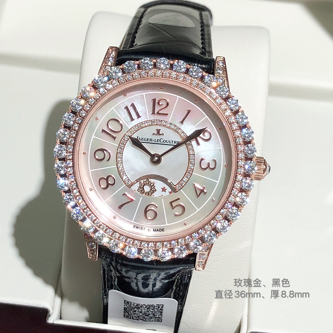 The Jaeger-LeCoultre Date Master Series is coming, the crocodile skin version, the upgraded version, the latest 24-hour sun, moon and stars, the jewelry-inlaid design style uses the prong setting process of high-end jewelry for the first time, and it is very rare to have orbital setting! Made of zircon material. Bright and lustrous! Case: Jewelry-set diamond case, .8mm movement: Swiss imported movement reflects noble and elegant temperament.