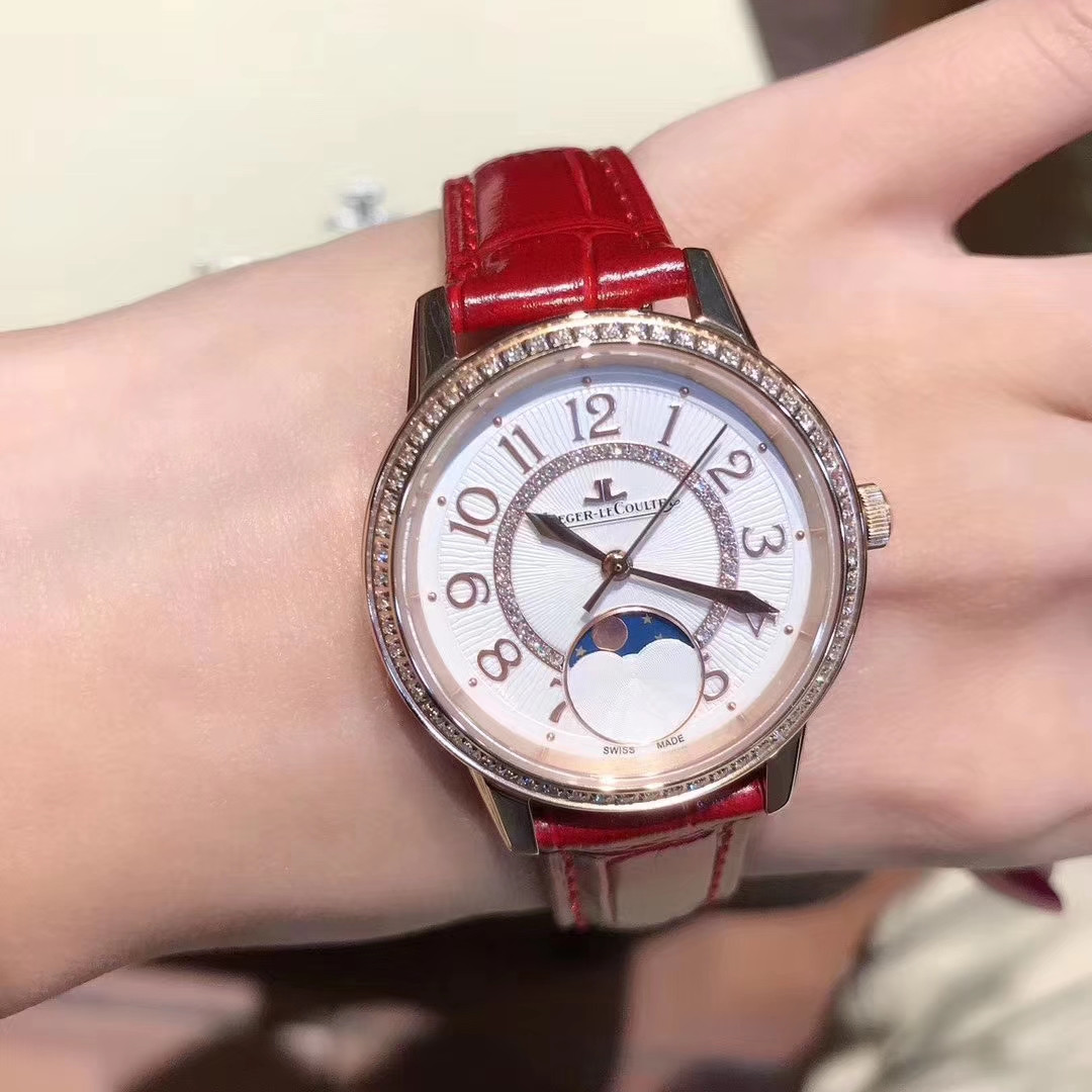 Jaeger-LeCoultre Date women’s watch, one of the three dreams of women, Jaeger-LeCoultre Date series high-quality women’s watch, the moon phase function rotates once a month, imported quartz movement, sapphire mirror, original folding buckle. Dimensions: 34mm wide, mm thick