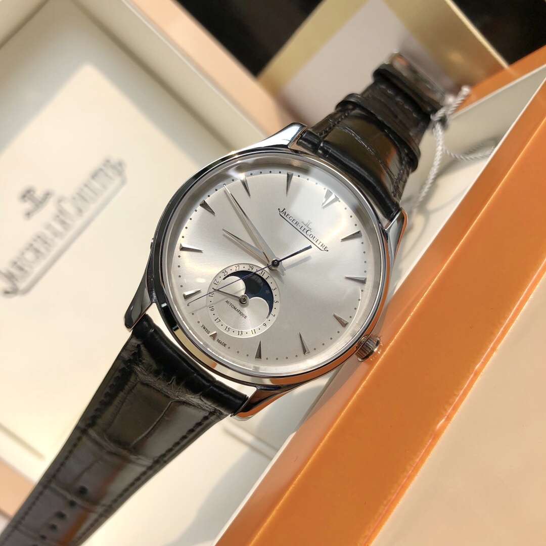 Jaeger-LeCoultre Moon Phase Master series, equipped with crocodile leather and cowhide leather strap, case diameter 5_1 movement, functions 100% synchronized with original self-produced movement. Stable in walking time and strong in quality