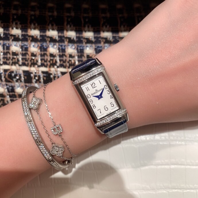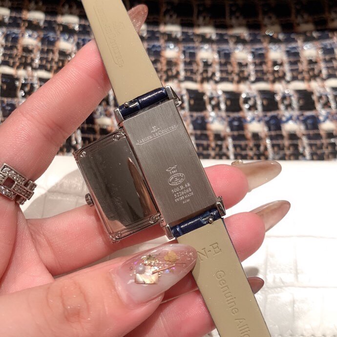 The Jaeger-LeCoultre Reverso One Duetto double-sided watch has a silver dial with sunray guilloché pattern on the front. It is simple yet exquisite and gorgeous, and is very suitable for daytime wear. The blue dauphine-shaped hands and the carefully designed Arabic numerals echo each other, and the layout is exquisite and harmonious. The dial on the back is very suitable for matching evening attire. With clear, powerful and pure and smooth lines, it shows the style derived from Art Deco design, which will surely attract women who pursue extraordinary beauty and exquisite craftsmanship. It also introduces fresh colors and new elements to the series. Size 20mm40mmmm. 🧚‍️🧚‍️🧚‍️