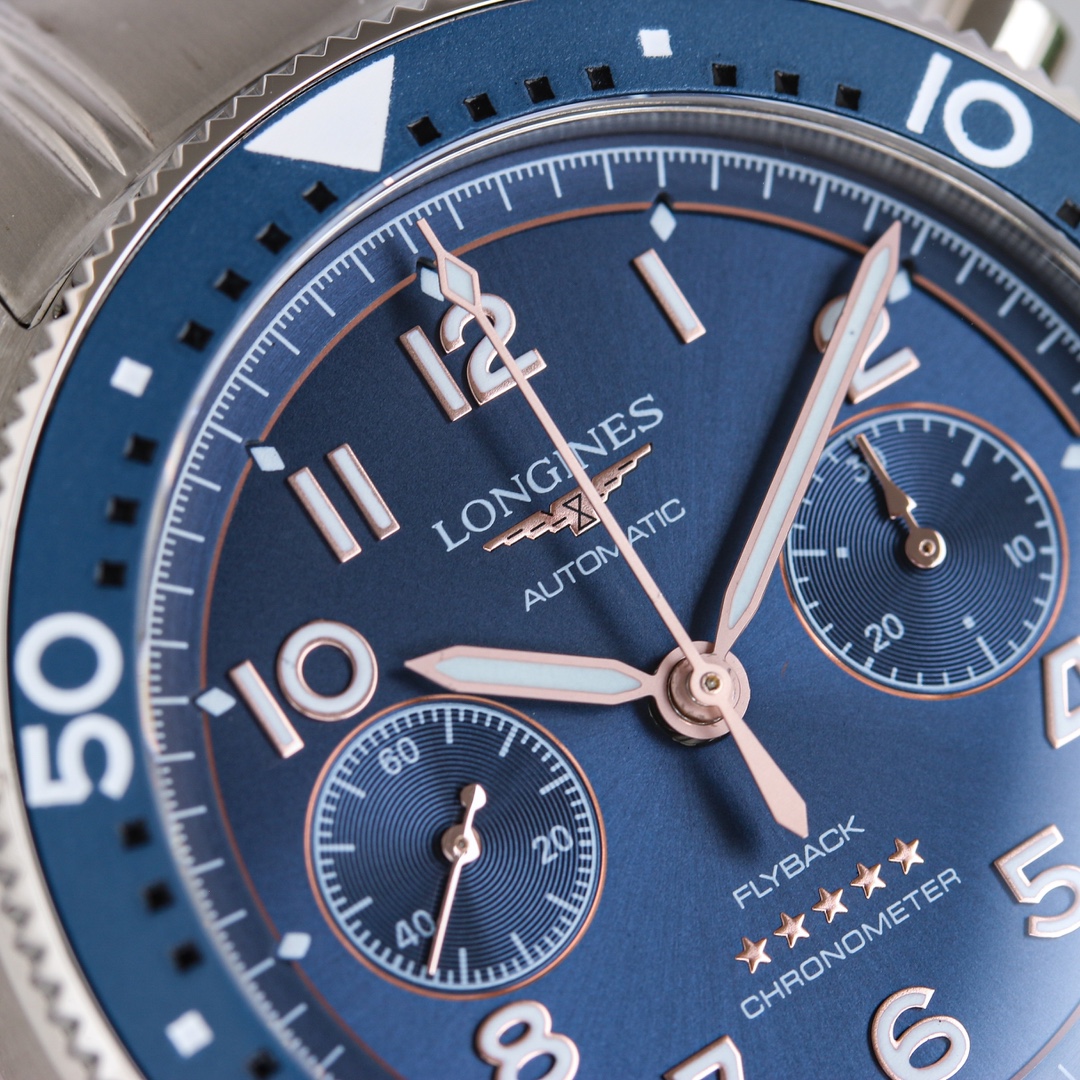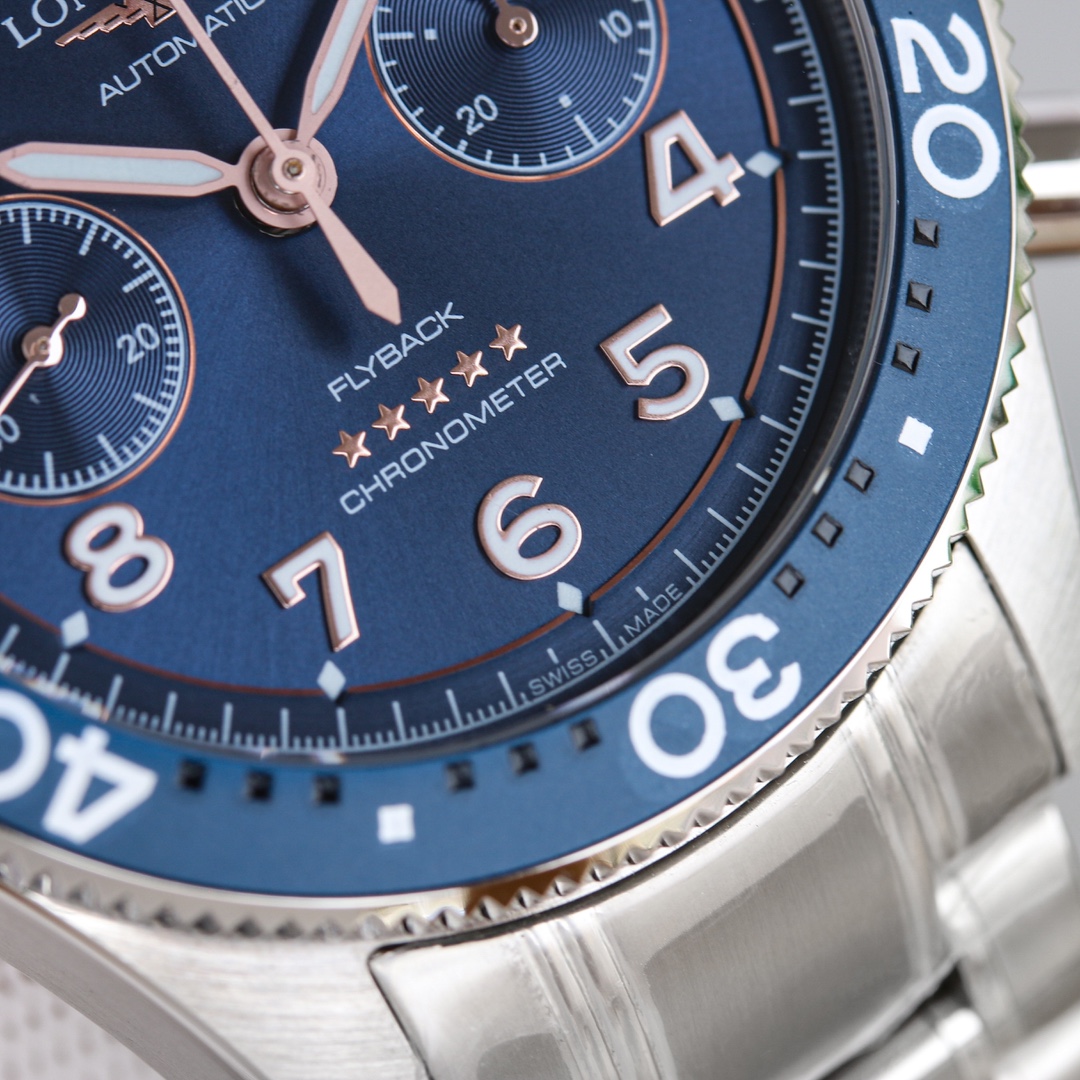Langjia Pioneer launches a flyback chronograph watch! 0 meter excellent waterproof performance. 4⃣️ Different versions of stainless steel bracelet, brown calfskin strap and NATO blue fabric strap, with original folding buckle, suitable for different styles of wearing needs. 5⃣️With the 7750 movement, it is replaced with the original genuine L798-hour power reserve, and it is certified as a precision timepiece by the Swiss Official Observatory (COSO).