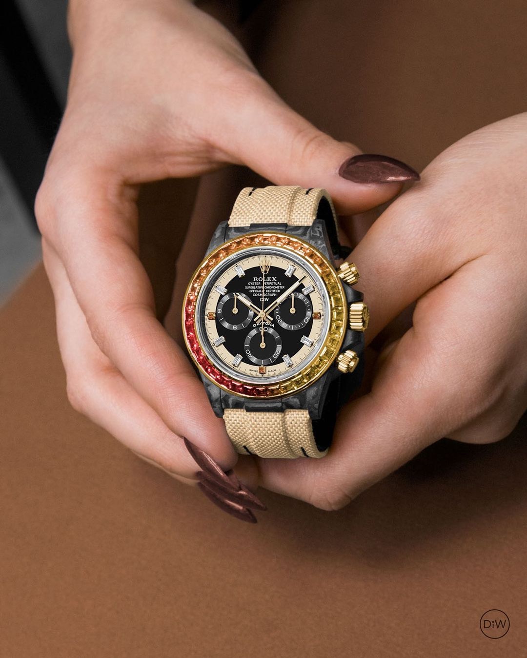 The carbon fiber customized version of the TW Factory ROLEX Universe Chronograph Daytona series, the watch is not only light to wear, but also