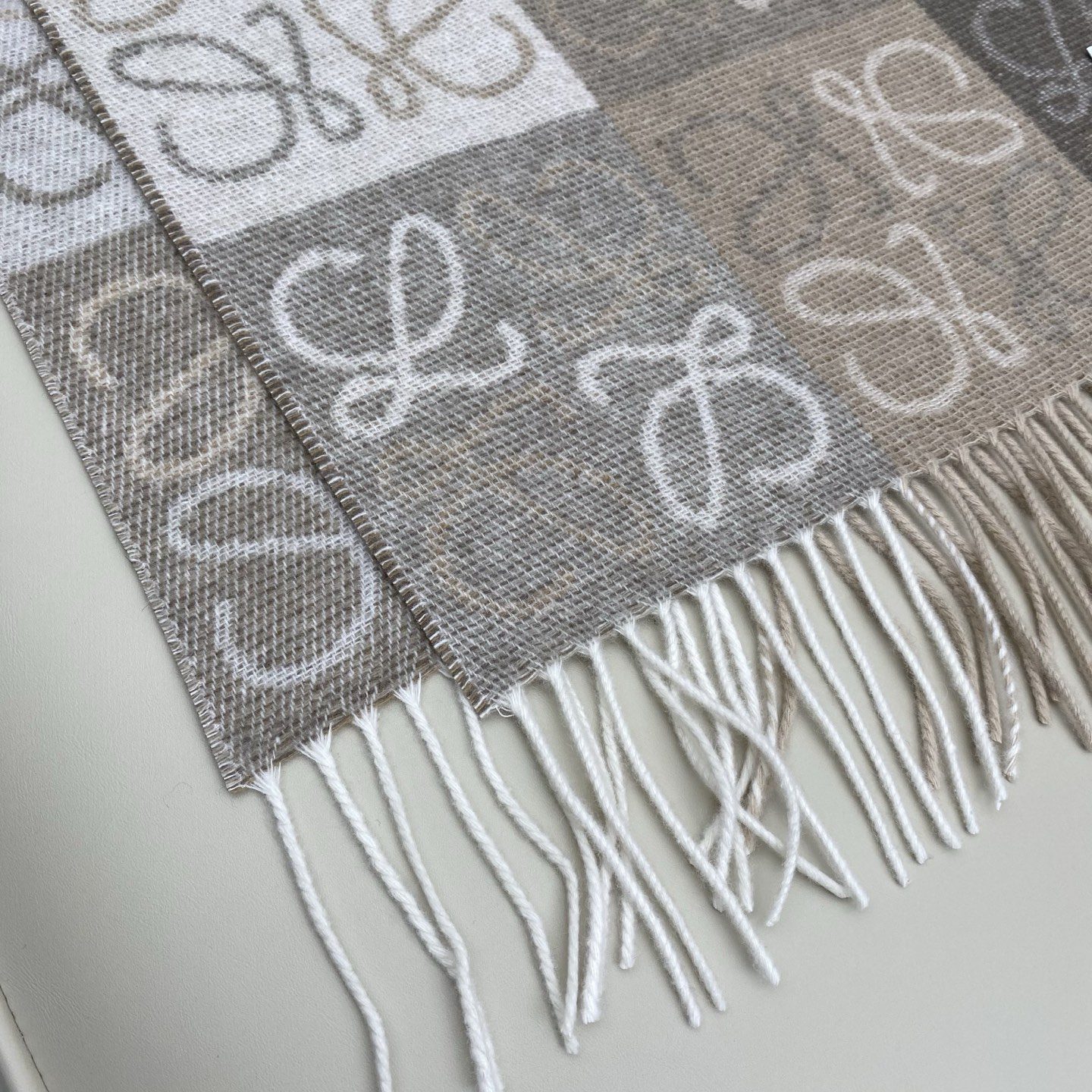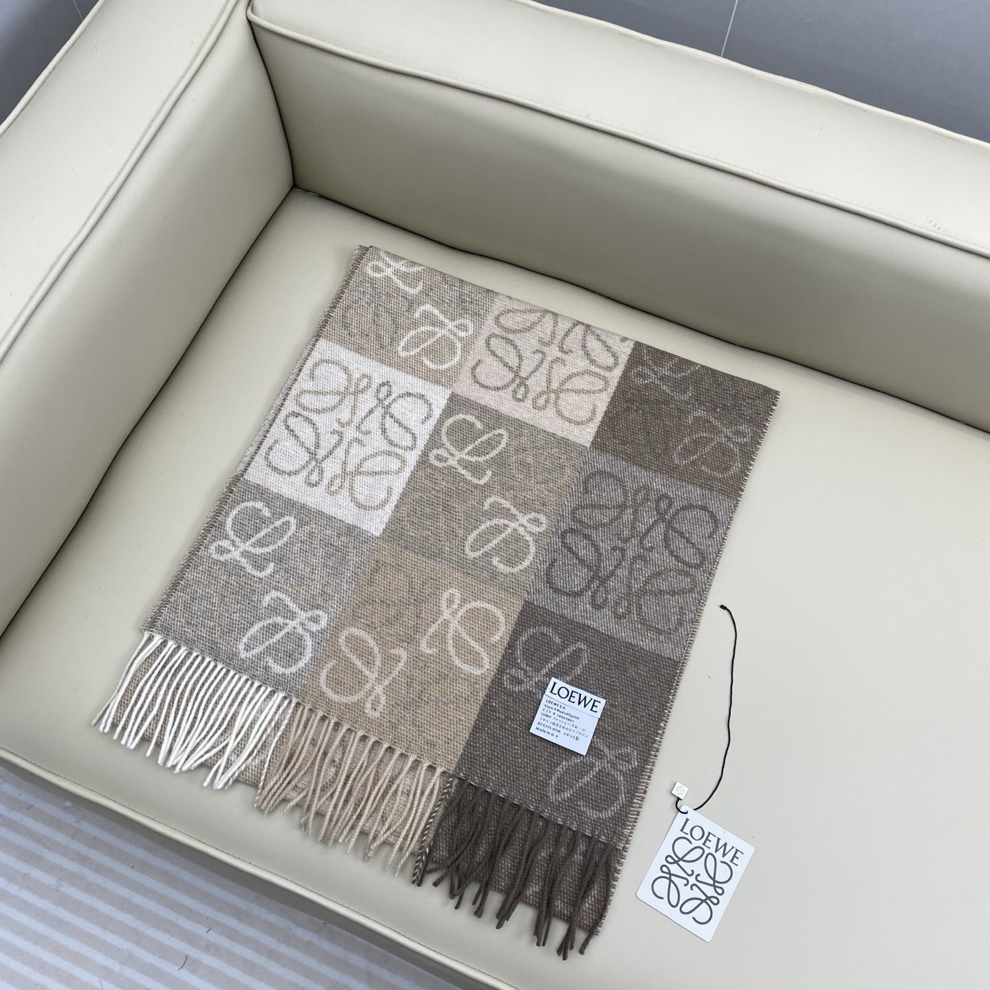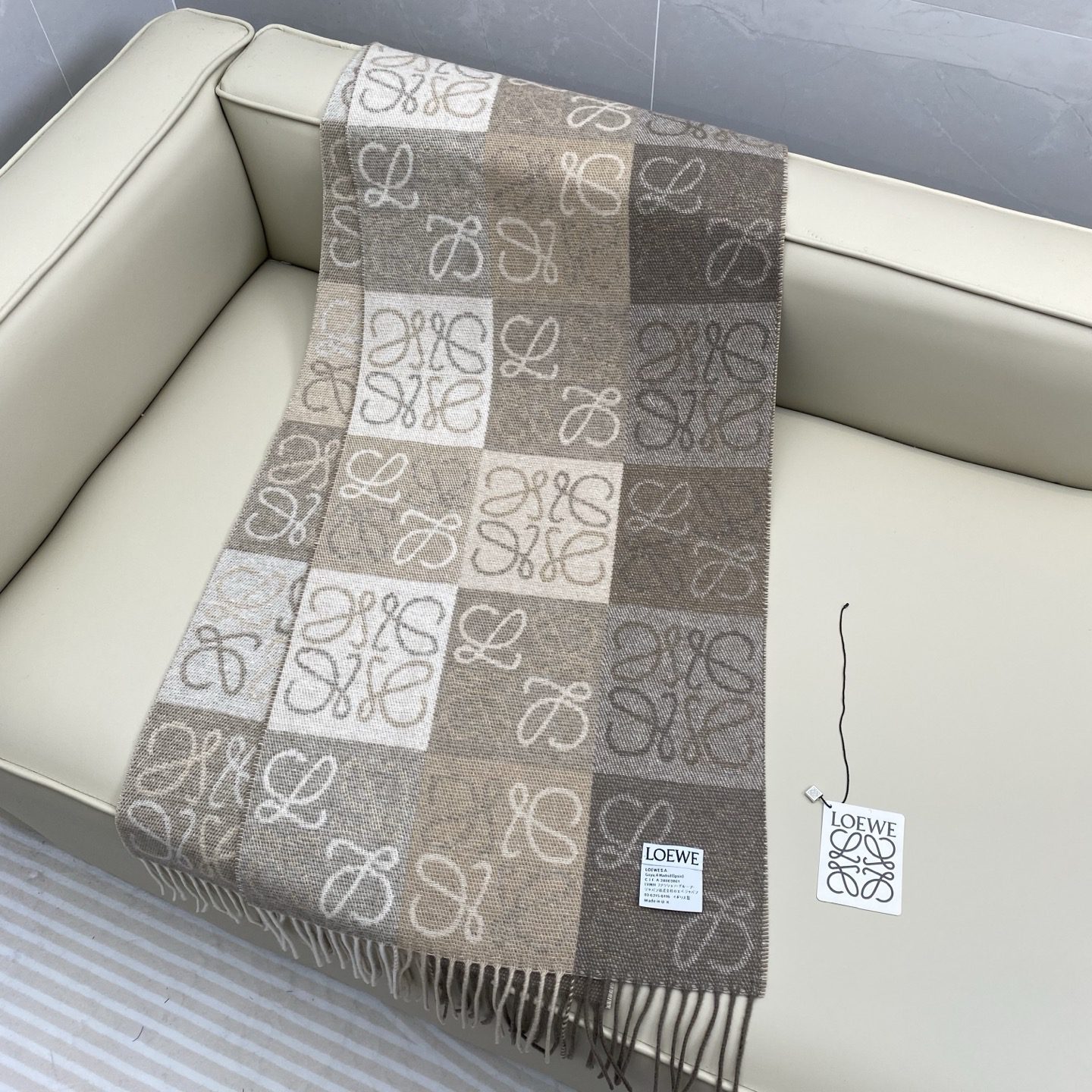 Loewe checkerboard jacquard scarf. Classic checkerboard matrix design. Sheep wool fabric. Comfortable and easy to care for. Labels are divided into domestic and overseas versions (domestic with washing water label, foreign countries without white washing water label). Same style for men and women. Classic and versatile. Specification 40cm.
