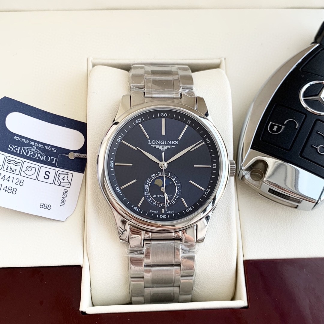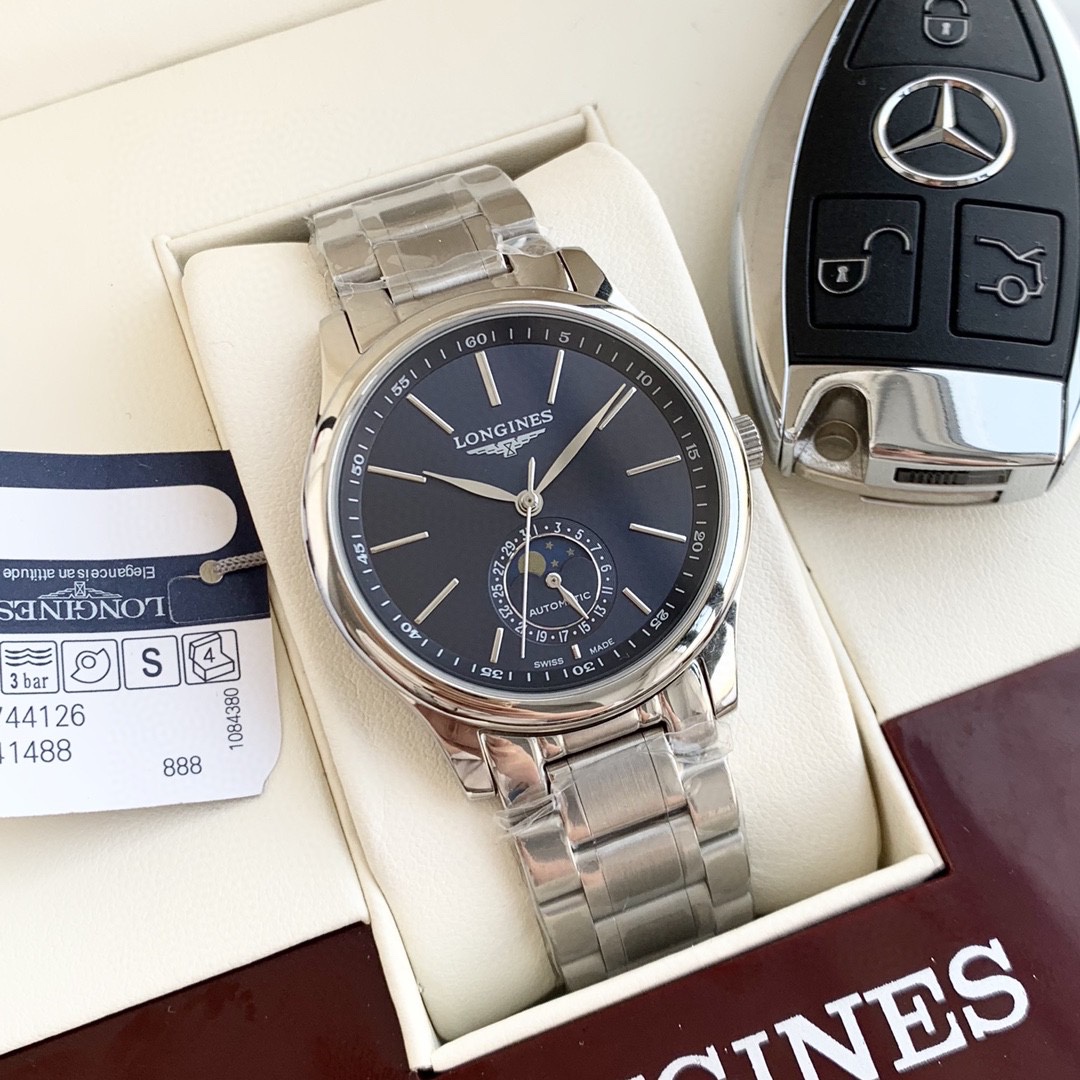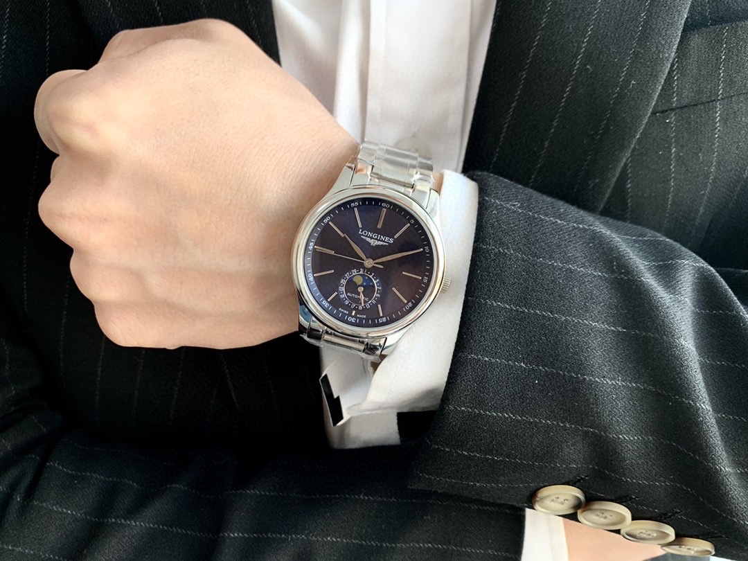 Longines-LONGINES Master Series Moon Phase Three and a Half-Hand Men’s Watch Fully Automatic Mechanical Movement 3mm Thickness 11mm️JH Actual Photo This watch is not only suitable for young people who have just entered the workplace, but it is also a simple and elegant choice for long-term wear!