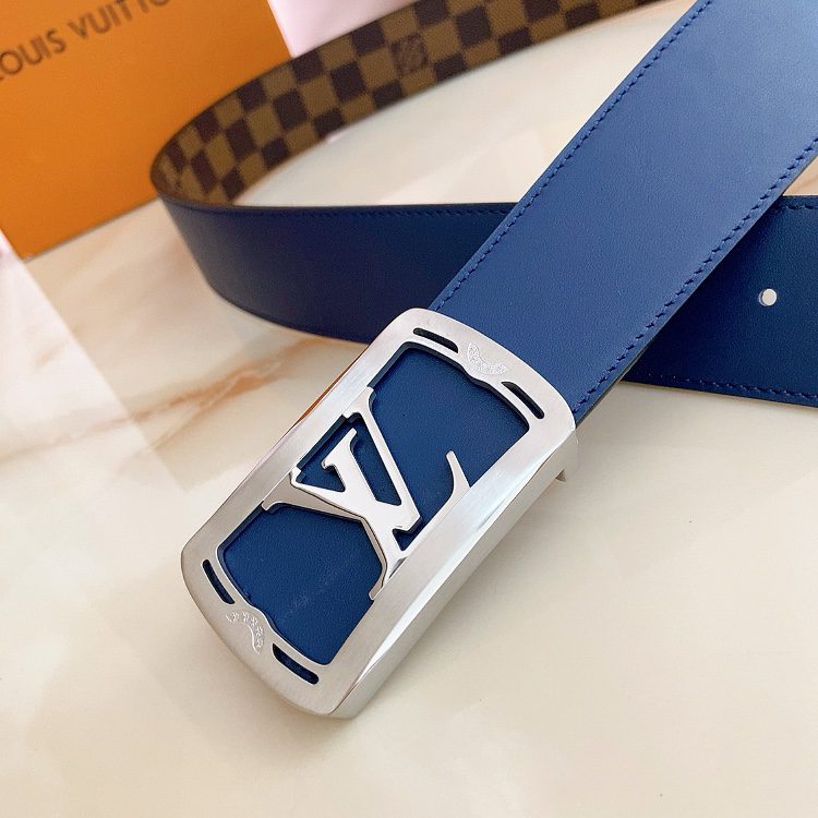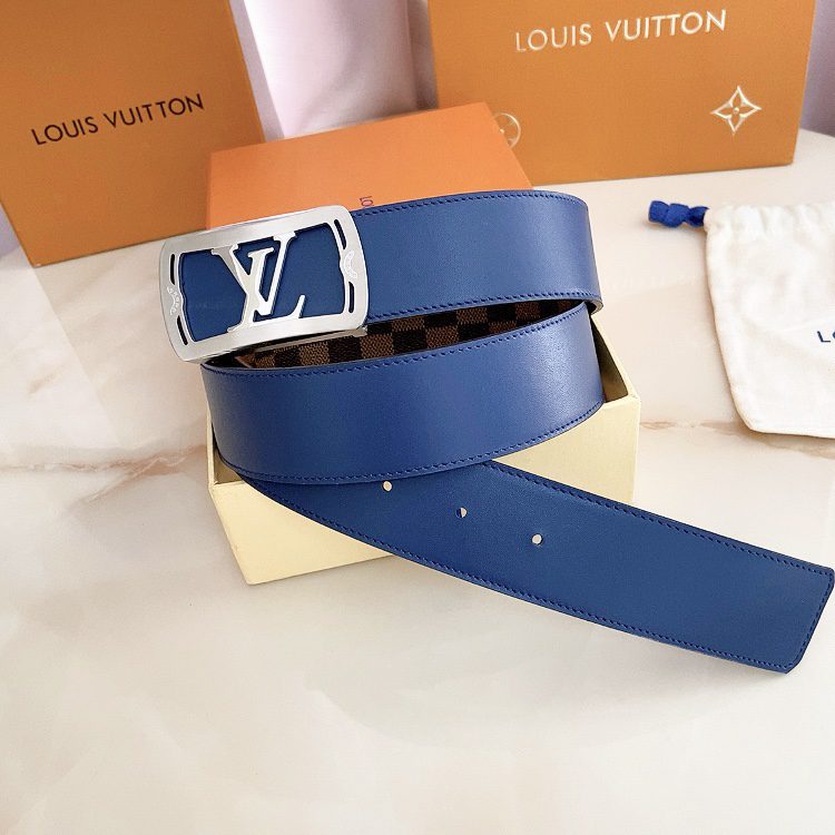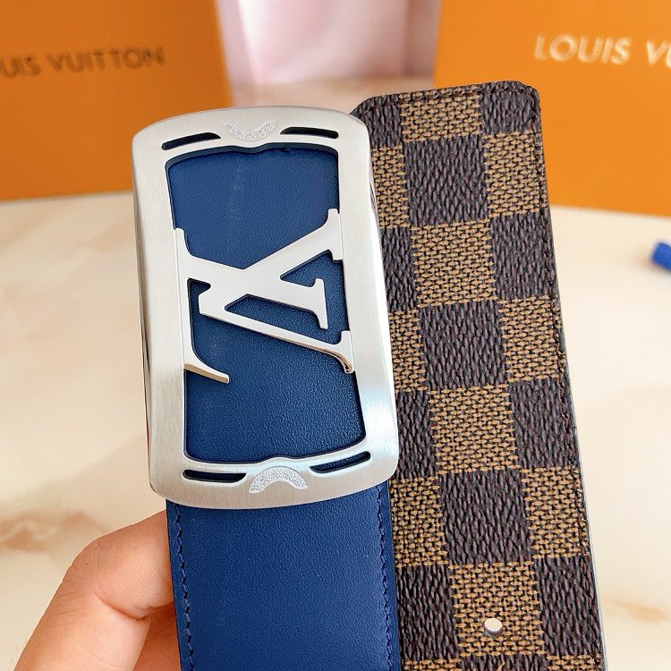 Louis vuitton new product 40mm. This belt can be used on both sides. The customized canvas fabric is set against the original royal blue calfskin textured leather base. The bag-inspired square buckle style buckle is well made and multi-color. Choose D.