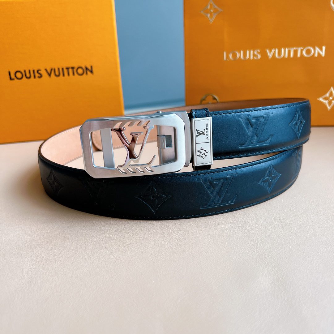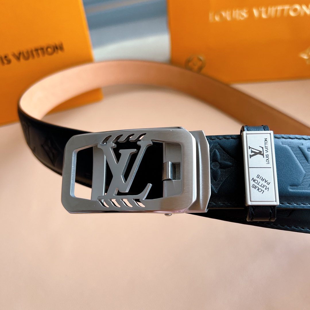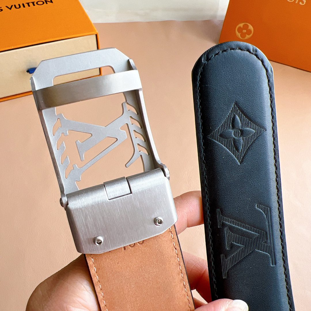 Belt LV automatic belt with steel buckle original leather Initiales mm, the belt is interpreted in a double-sided style