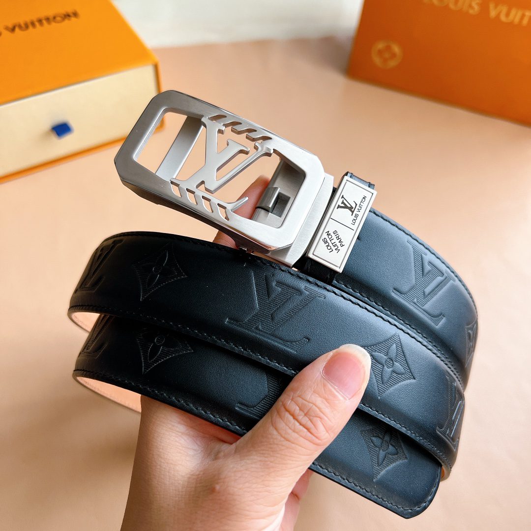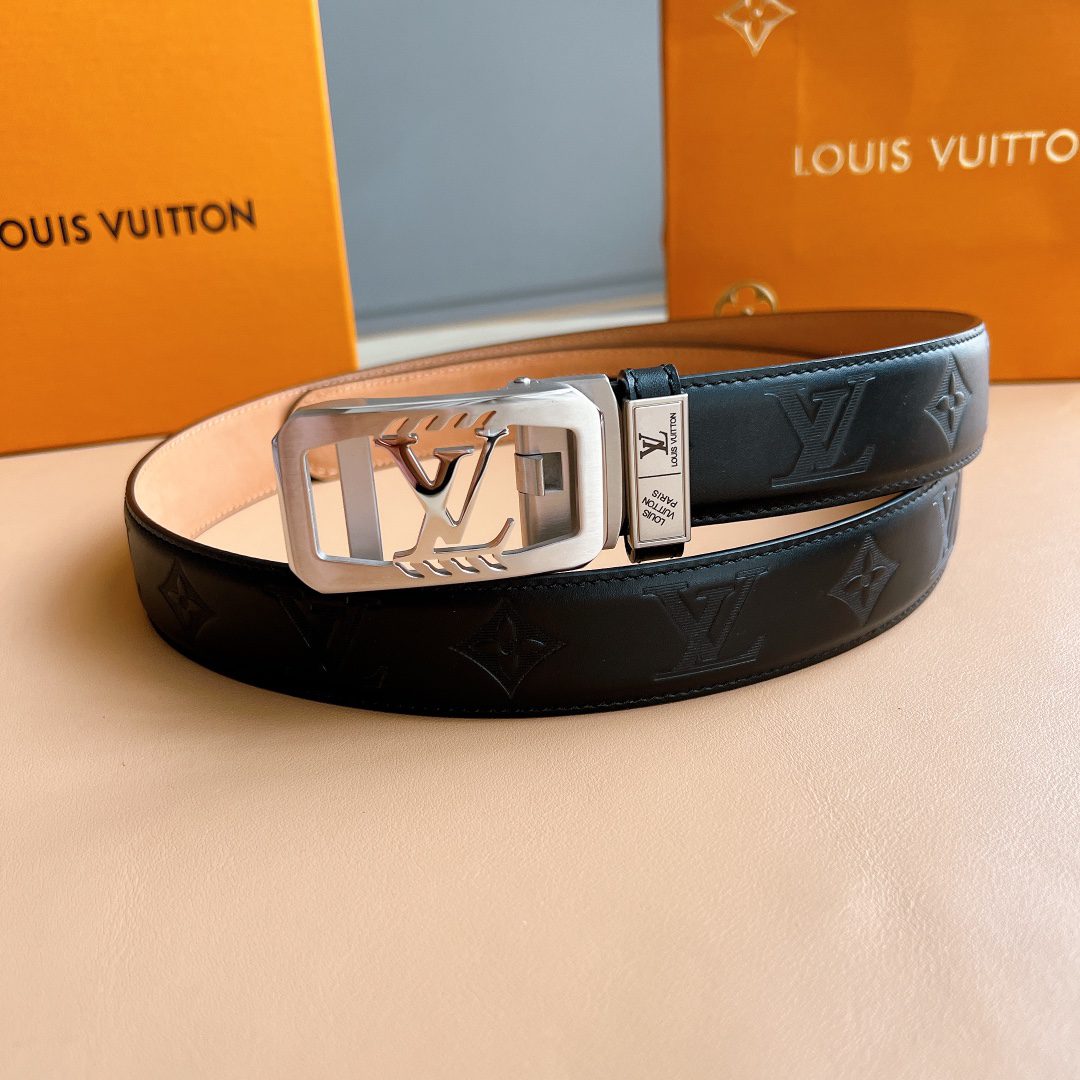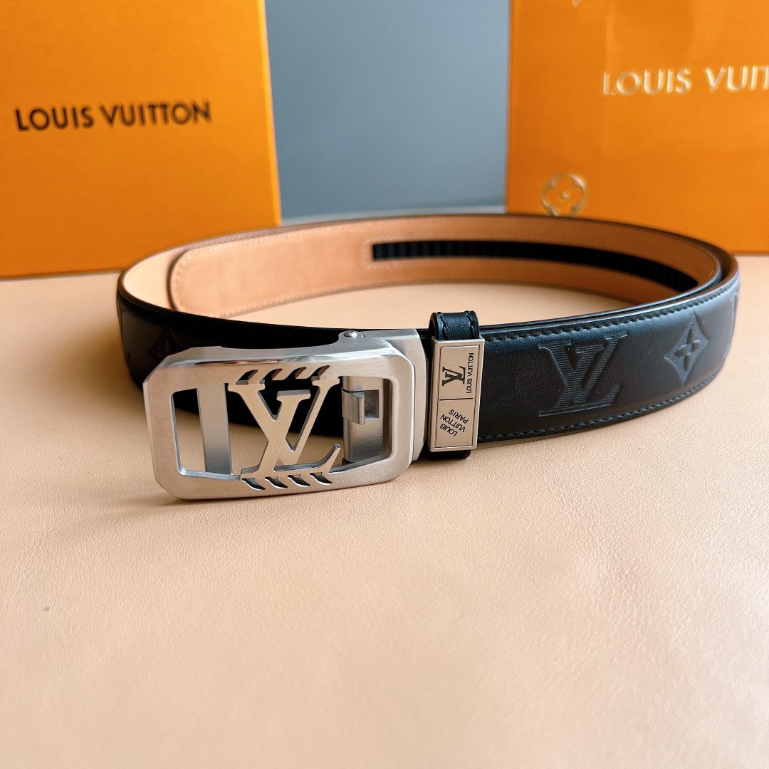 Belt LV automatic belt with steel buckle original leather Initiales mm, the belt is interpreted in a double-sided style