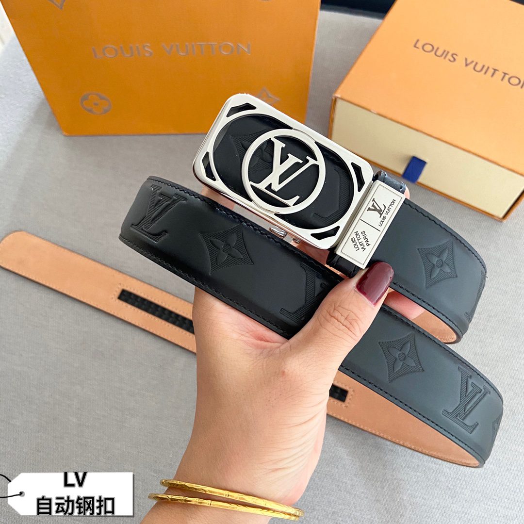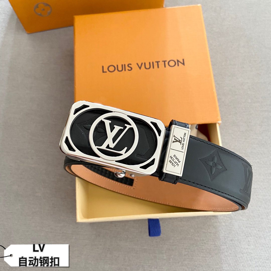 Belt LV automatic belt with steel buckle original leather Initiales mm, the belt is interpreted in a double-sided style