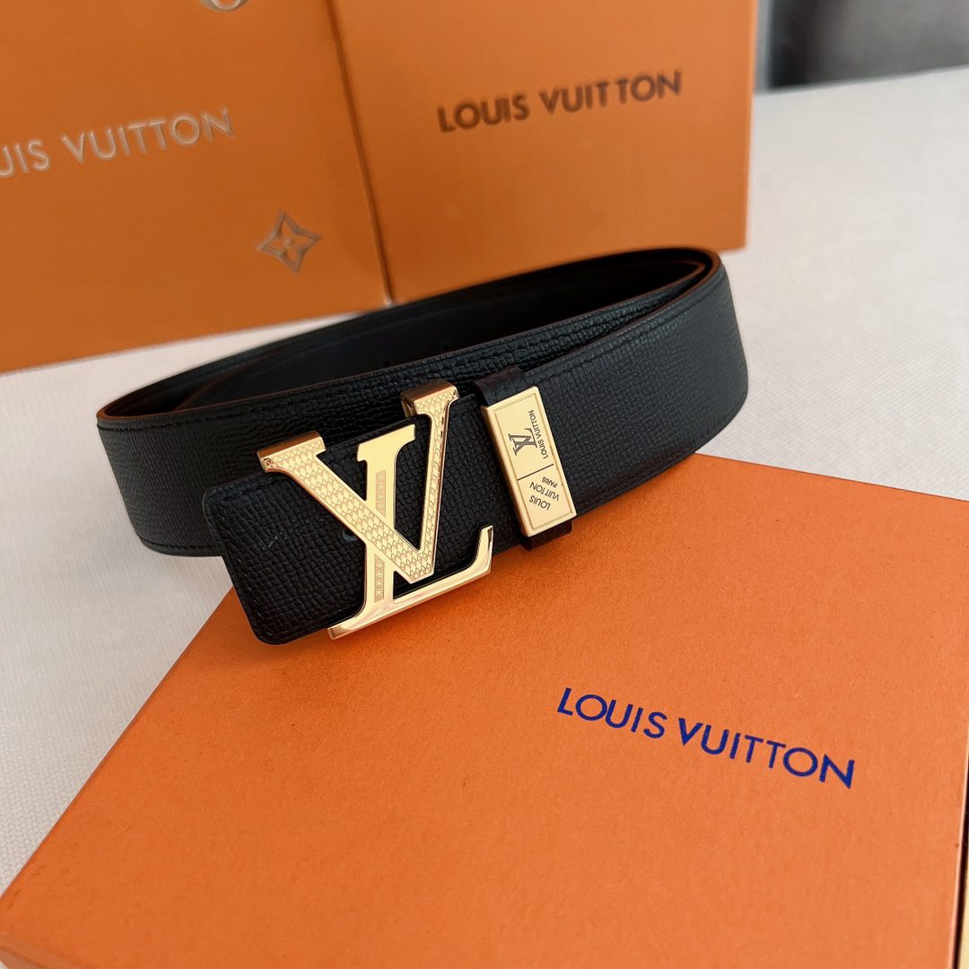 LV Initiales 40mm new English double-layer steel buckle counter belt printed double-sided style interprets two classics: Monogram shows the essence of Louis Vuitton’s beauty, and calfskin interprets low-key elegance. An LV monogram buckle completes this versatile design. p