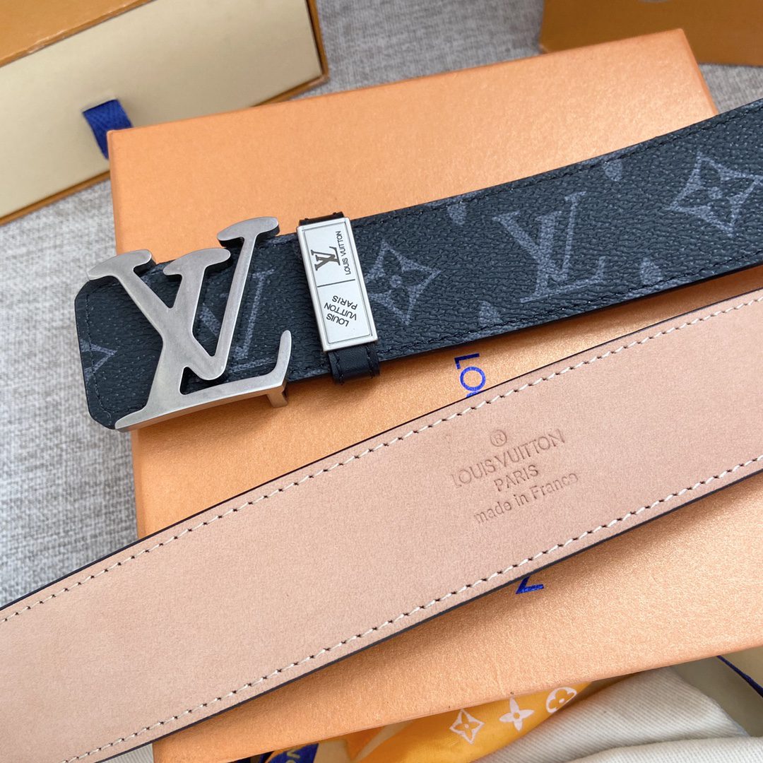 LV Initiales 40mm new English double-layer steel buckle counter belt printed sand bottom double-sided style interprets two classics: Monogram shows the essence of Louis Vuitton’s beauty, and calfskin interprets low-key elegance. An LV monogram buckle completes this versatile design. p