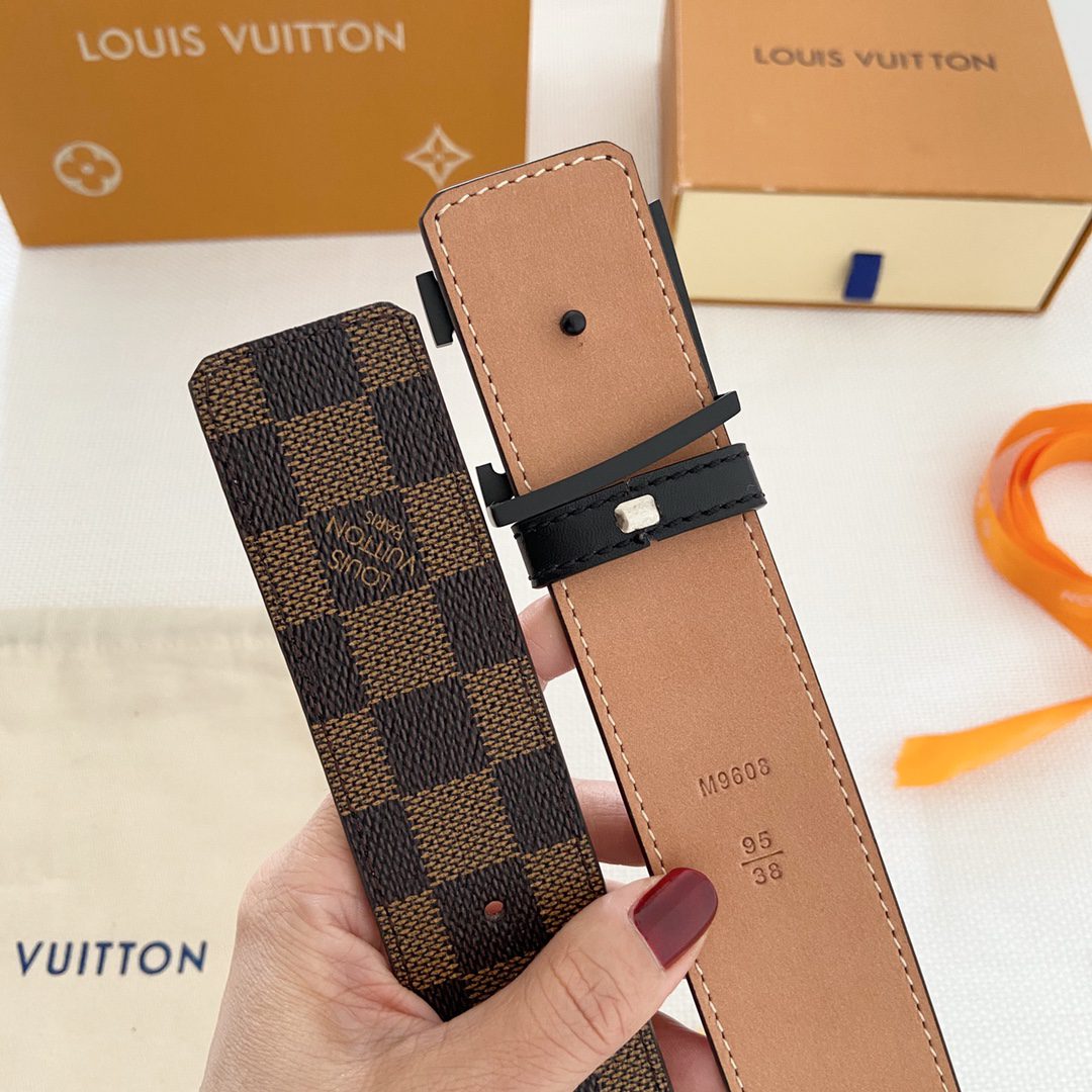 Belt LV Initiales 40 mm new English double-layer steel buckle counter belt printed sand bottom